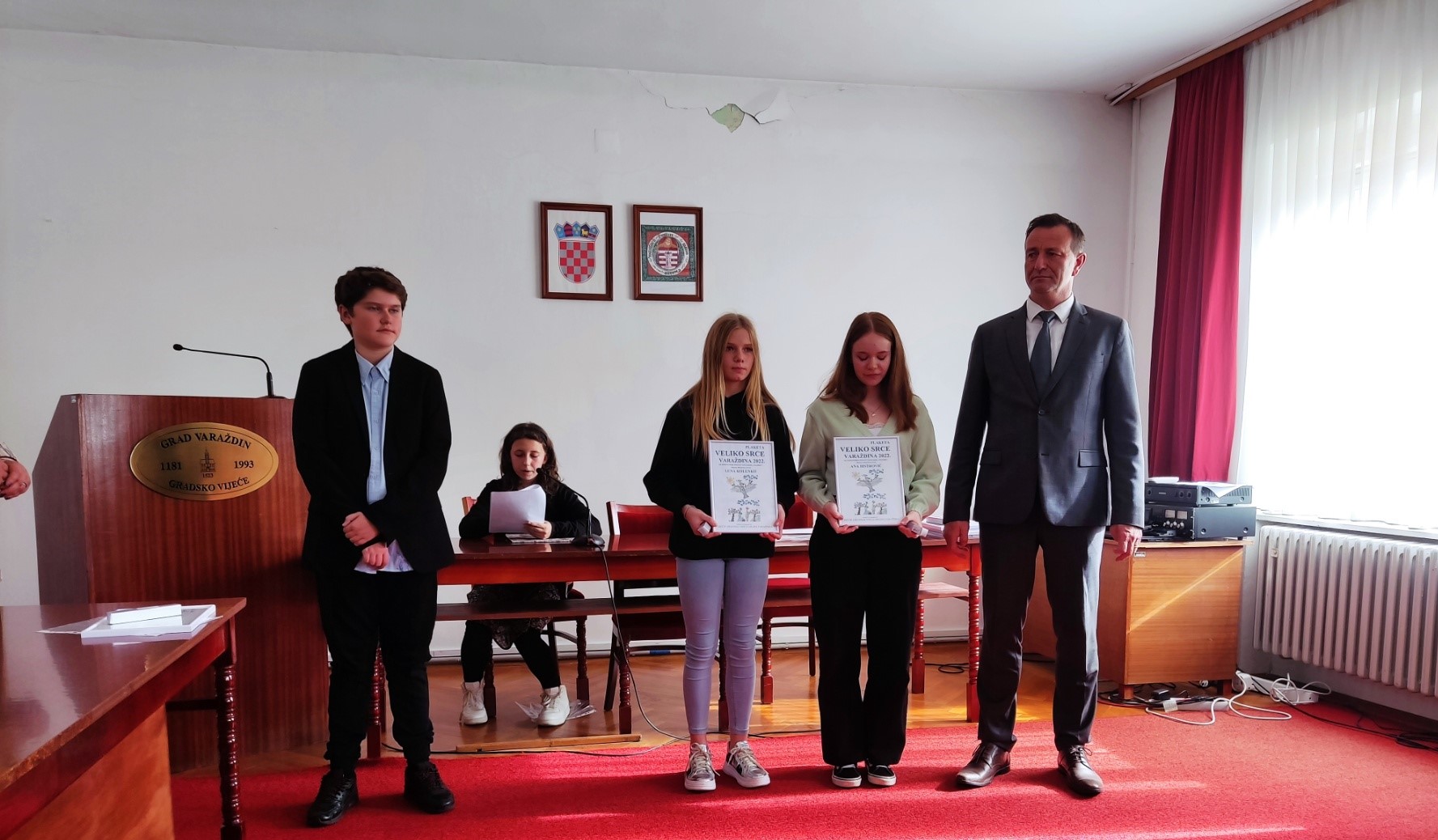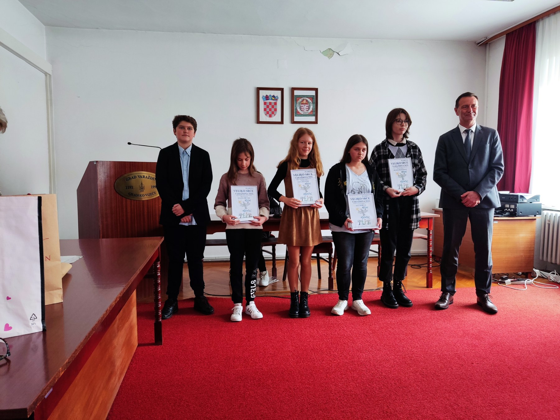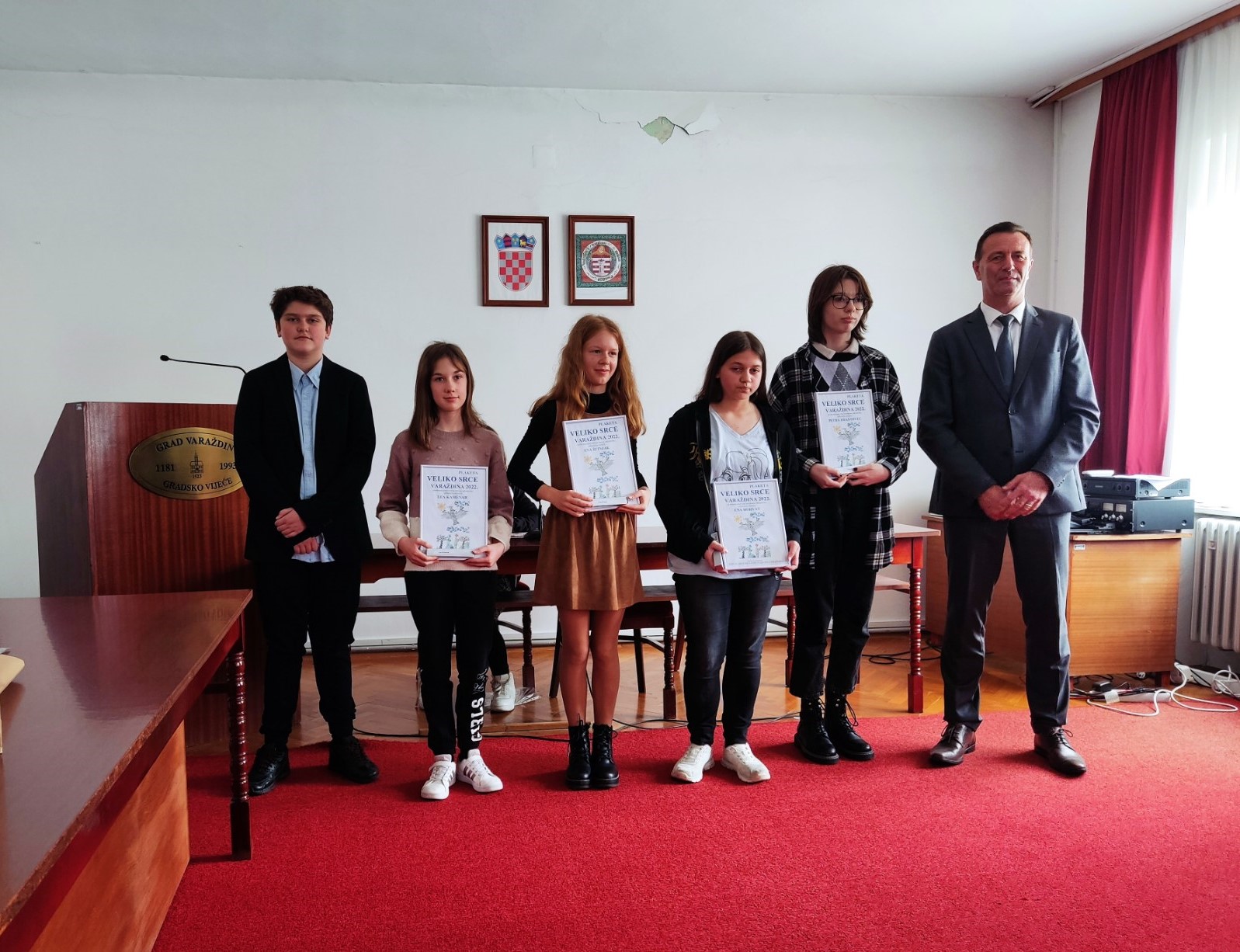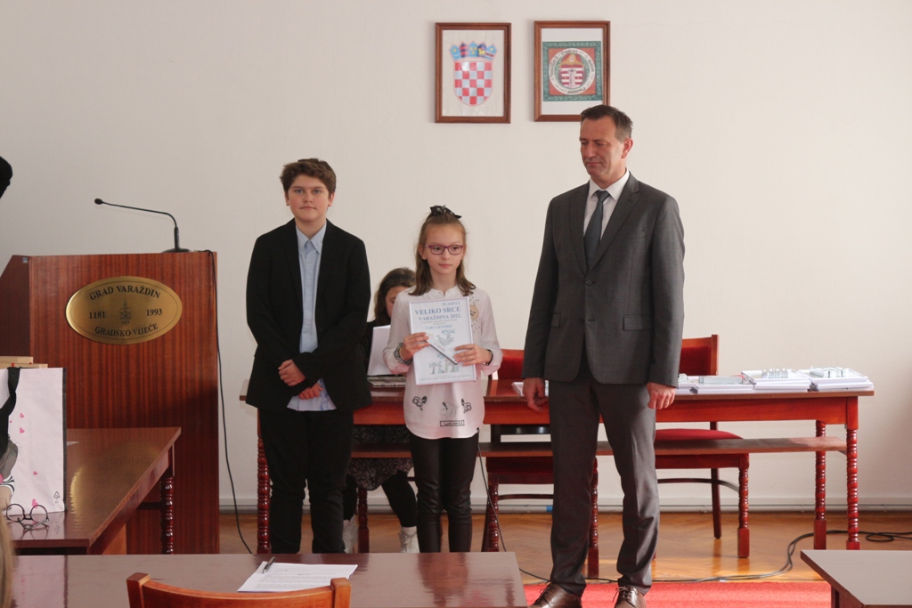 Gradonačelnik Grada Varaždina dr. sc. Neven Bosilj zajedno s predsjednikom Dječjeg Gradskog vijeća Grada Varaždina Lovrom Ledenkom uručio je plakete nagrađenima i čestitao im na velikom srcu koje su pokazali prema svojim vršnjacima, starijima i zajednici u kojoj žive.