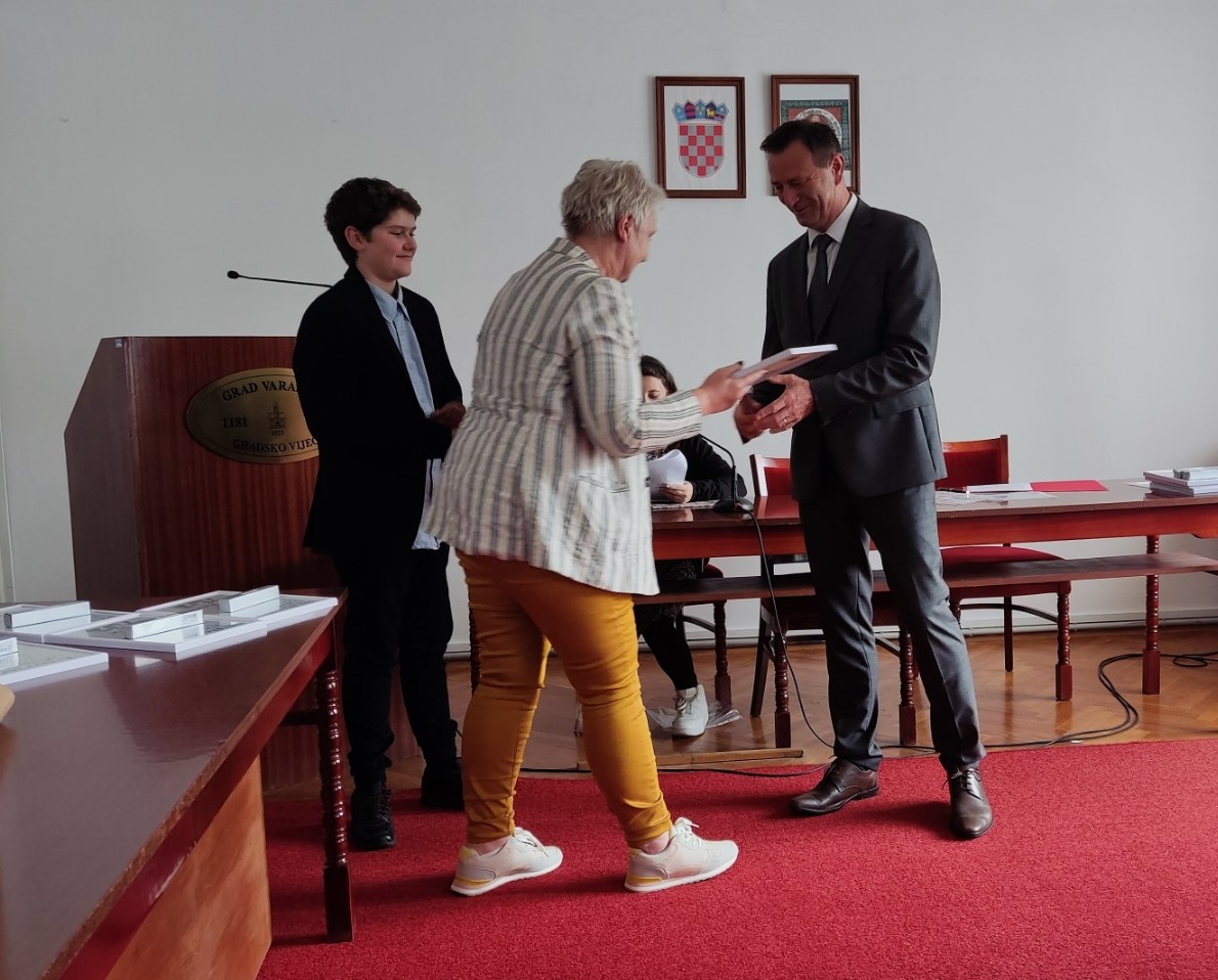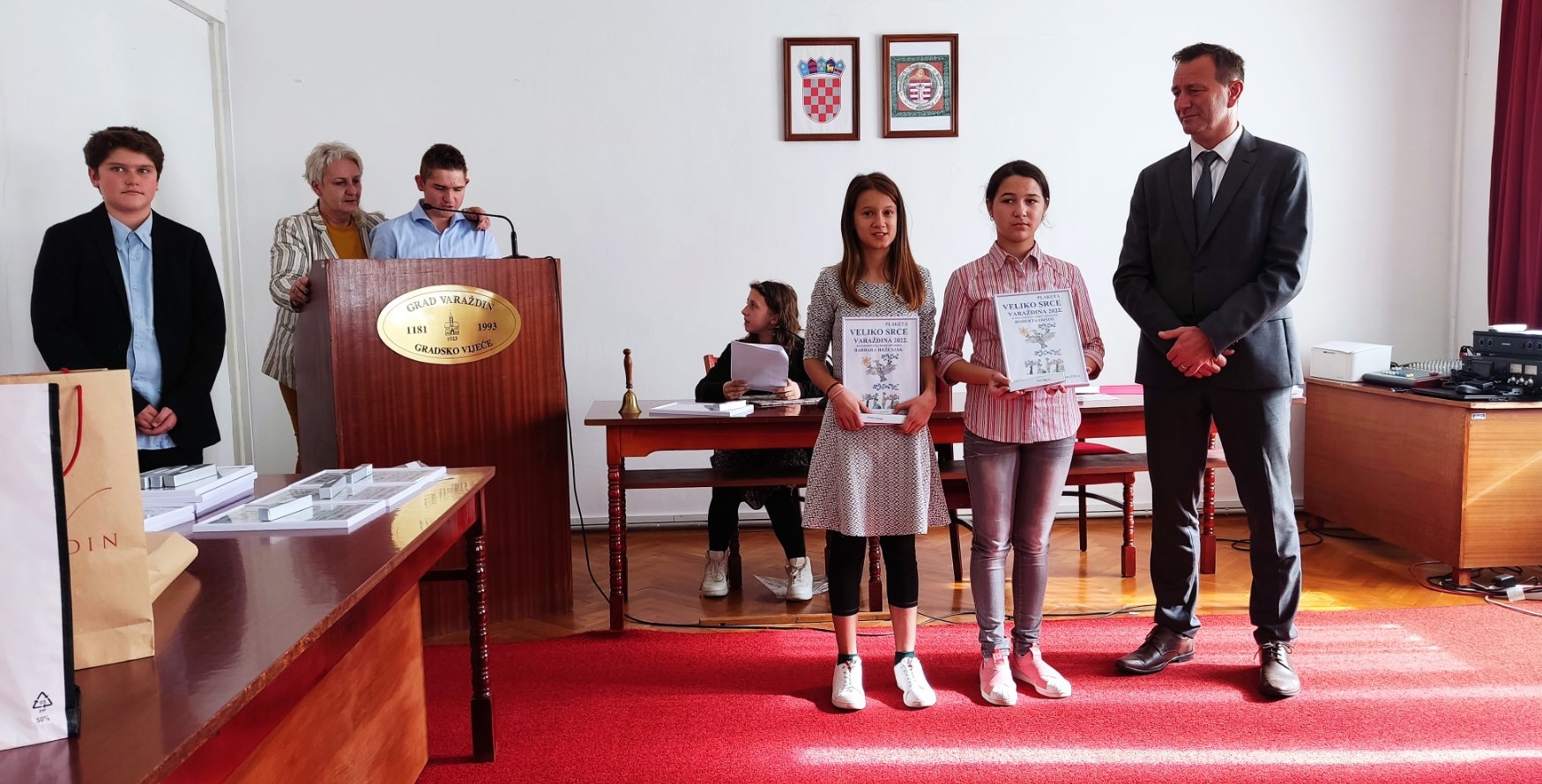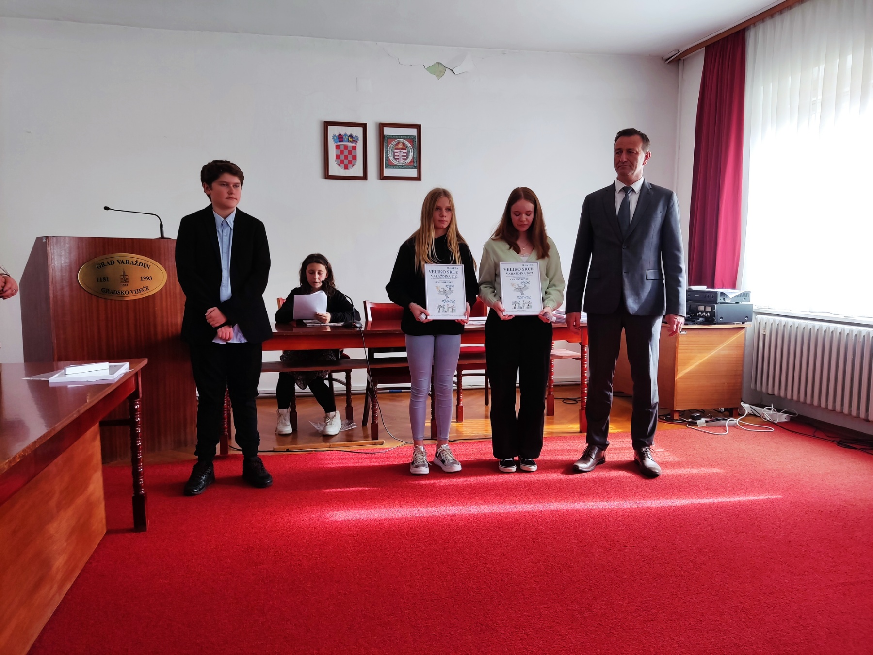 Gradonačelnik Grada Varaždina dr. sc. Neven Bosilj zajedno s predsjednikom Dječjeg Gradskog vijeća Grada Varaždina Lovrom Ledenkom uručio je plakete nagrađenima i čestitao im na velikom srcu koje su pokazali prema svojim vršnjacima, starijima i zajednici u kojoj žive.