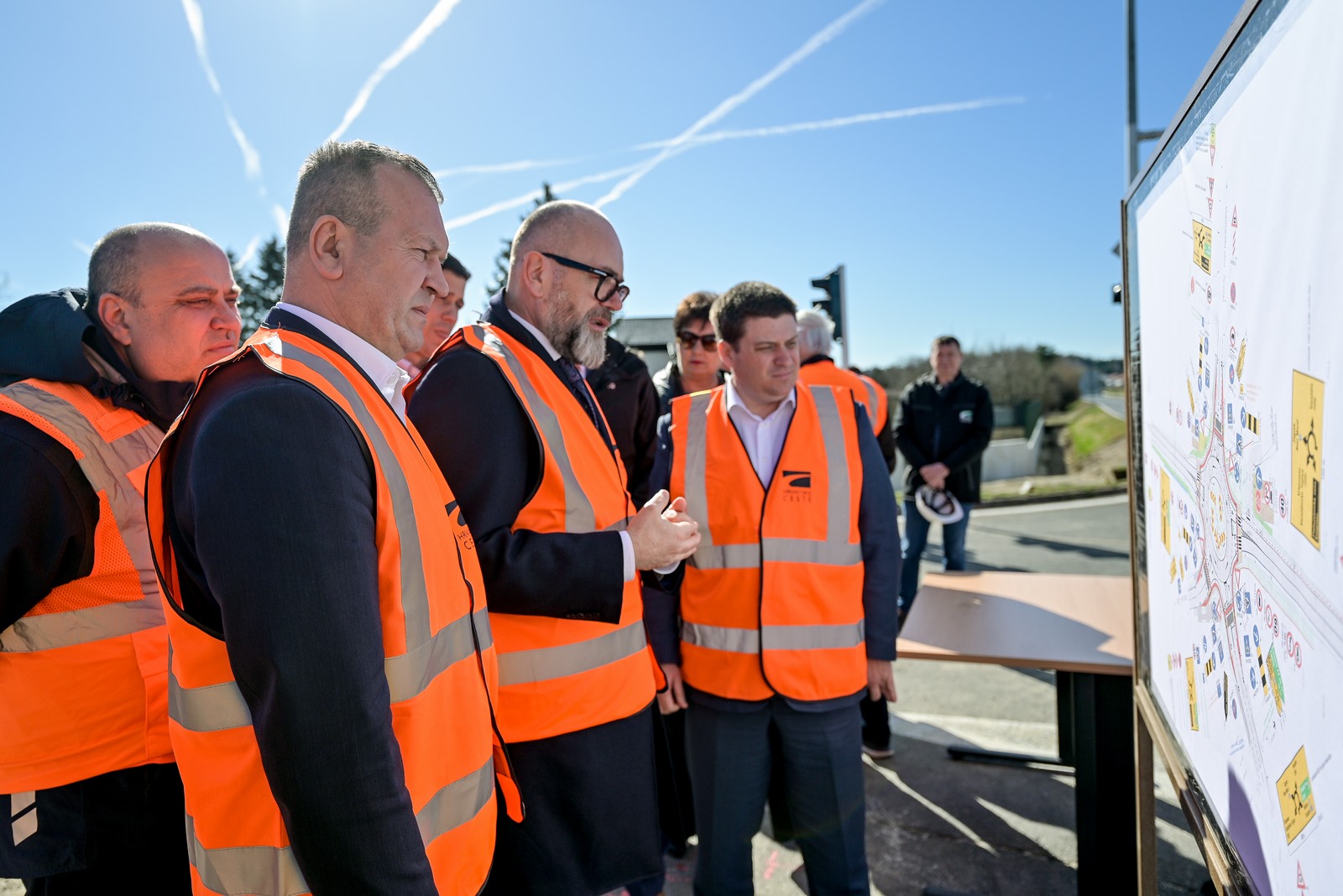 Gradilište je danas obišao potpredsjednik Vlade RH i ministar mora, prometa i infrastrukture Oleg Butković zajedno sa županom Varaždinske županije Anđelkom Stričakom, predsjednikom Uprave Hrvatskih cesta Josipom Škorićem i domaćinom, načelnikom Općine Gornji Kneginec Goranom Kaniškim.