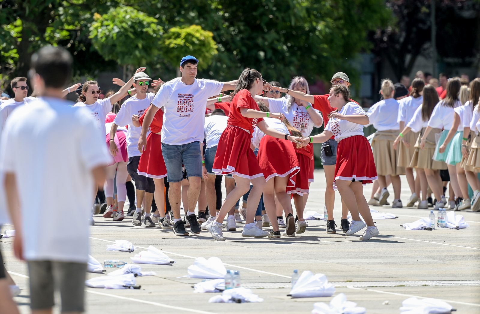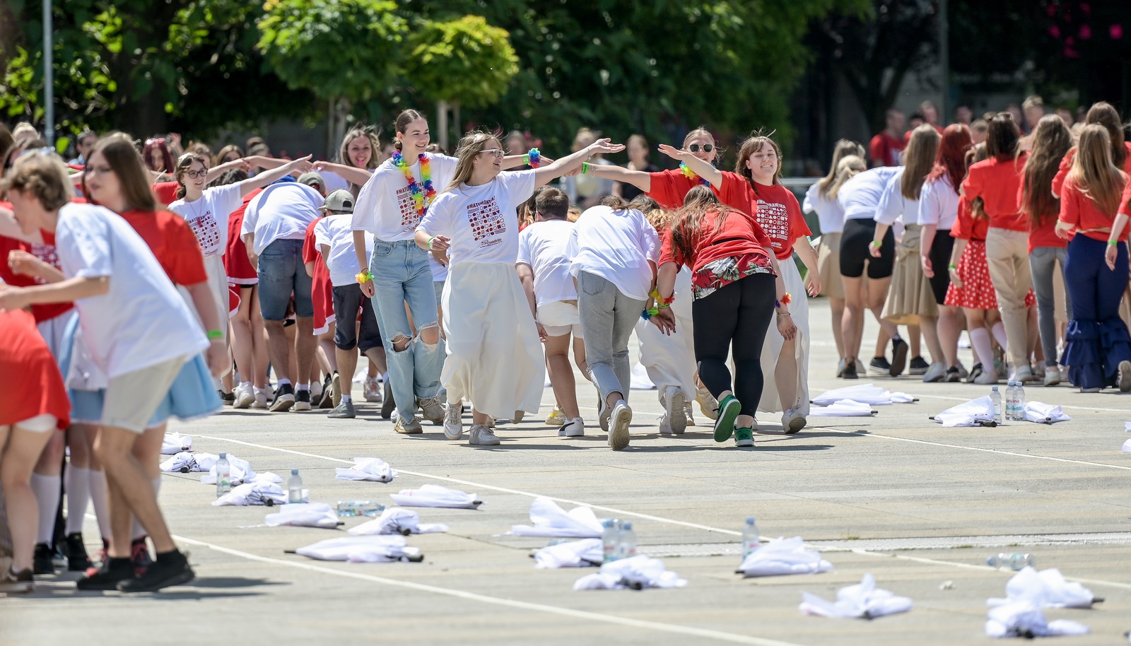 Ove godine maturante su plesu podučili instruktori iz Plesnog kluba D&D, a u organizaciju se od ove godine uključio i Školski sportski savez Varaždinske županije. Majice i kišobrane koji će ostati lijepa uspomena svakom od sudionika zajedno su sufinancirali Grad Varaždin i Varaždinska županija.