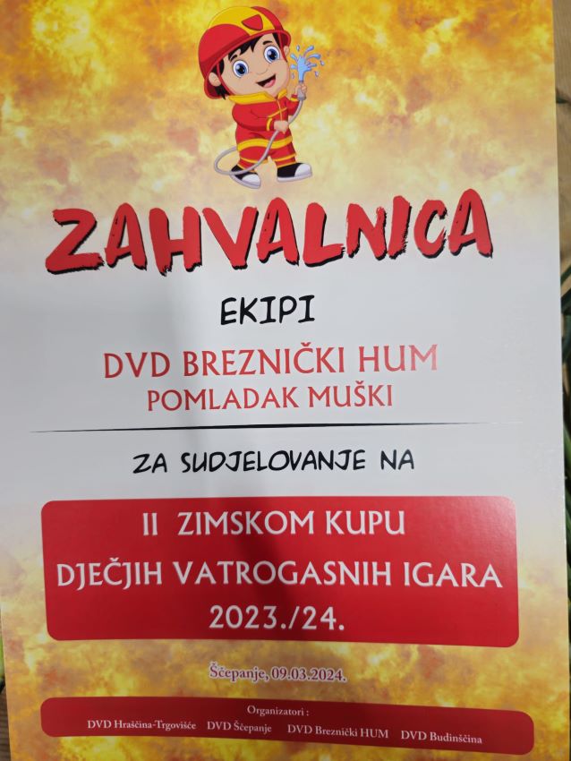 U subotu, 9. ožujka u prostorijama DVD-a Šćepanje održano je četvrto, posljednje kolo Zimske lige - drugih po redu Zimskih vatrogasnih igara za djecu i mladež. Sudjelovalo je stotinjak djece iz četiriju vatrogasnaih društava Krapinsko-zagorske i Varaždinske županije: DVD Budinščina, DVD Hraščina-Trgovišče, DVD Breznički Hum i DVD Šćepanje. Natjecatelje i male vatrogasce uvodno je pozdravio načelnik Općine Breznički Hum Zoran Hegedić.