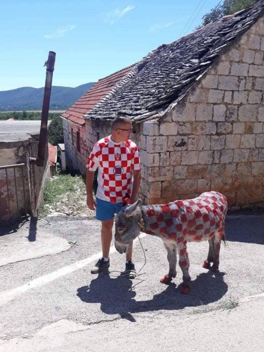 Navijačka euforija zahvatila je sve dijelove Lijepe naše, a neki navijači iz svega znaju zbijati i šale. Pa ako se u navijačke boje mogu obući bebe ili kućni ljubimci, zašto kockice ne bi dobio i magarac? Fotografija iskusne novinarke Karmen Gumbas ovdje je samo da nas nasmije.
