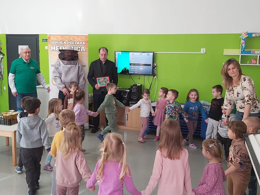 - Vezano uz obilazak vrtića djeci objašnjavamo značenje i ulogu pčela u prirodi, pčelinjeg proizvoda meda, svojstava i dobrobiti meda općenito. Ovo je peta godina kako naša udruga provodi ovu korisnu akciju a tako ćemo nastaviti i ubuduće – zaključio je predsjednik Udruge Medarica Martin Gašparević.