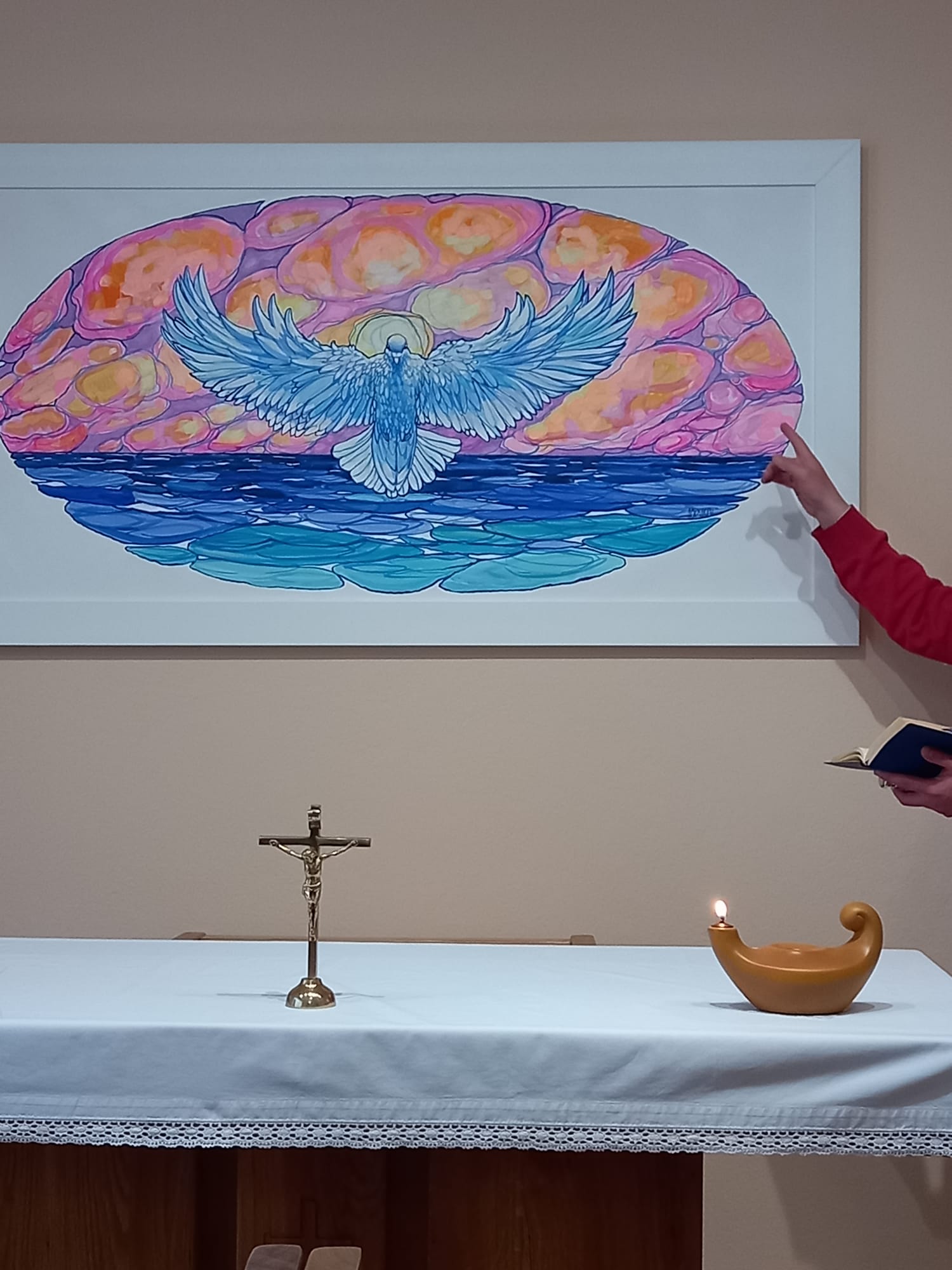 Istoga dana kada je u Karlovcu bilo otvaranje i blagoslov cjelovitoga mozaika Svetog Josipa i Svete Obitelji njegova kćerka, također akademska slikarica Ana Marija Botteri postavila je svoju sliku s likom Svetoga Duha u stilu goluba mira između neba sa svecima i raspukloga mora na pučini, blagoslovljenu od mjesnoga župnika toga dana u kapeli kuće časnih sestara Klanateljica krvi Kristove u gradu Karlovcu.