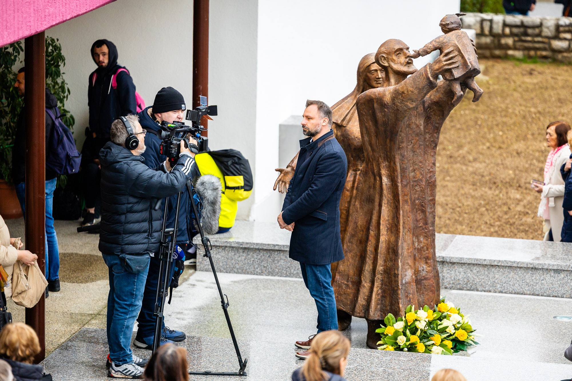 Neumorni rektor svetišta još u vrijeme nastanka mozaika smišlja za sve brojniji vjerni puk oživljavanje lika Svetog Josipa u obiteljskoj šetnji među vjernicima u čekanju na Svetu Misu, u dočeku i ispraćaju iz Svetišta. Monsignor je tu živu sliku doživljavao duboko u sebi još prije početka likovnoga ostvarenja: „Kako je sve veći broj hodočasnika pristizao, to sam bio uvjereniji, da nam je potreban vanjski kip Svetoga Josipa. Sada mi je zanimljivo promatrati Svetoga Josipa, Svetu Mariju i Božjeg sina Isusa: Josip uzdiže Marijinog sina Isusa, kojemu ga je Bog poslao biti djevičanskim ocem, a Marija, stavljajući svoju ruku na Josipovo rame, to kao vjernica, žena i majka potvrđuje“, govorio je monsignor Sente na svečanoj akademiji i sve te nadahnute riječi složio u zaključak i preporuku svim vjernicima i hodočasnicima Nacionalnoga svetišta: „Promatrajući prezentirana umjetnička djela, kako Josipa Botterija, tako i Vida Vučaka, ponovno mogu ustvrditi, da nema te životne situacije u kojoj se možemo naći pojedinci, članovi obitelji i posvećenoga života, a da odraz, utjehu snagu i put nećemo pronaći u životima Svete Obitelji, Isusa, Marije i Josipa, muža, žene i Boga, oca, majke i djeteta, Boga koji nas ljubi“, govorio je glavni dušobrižnik Nacionalnog hrvatskog svetišta Svetog Josipa monsignor Antun Sente na ovoj prigodnoj svečanoj akademiji oblačenja svetišta u umjetničko ruho, koje ga čini bližim svakodnevnome životu i trajnoj duhovnoj svetosti.