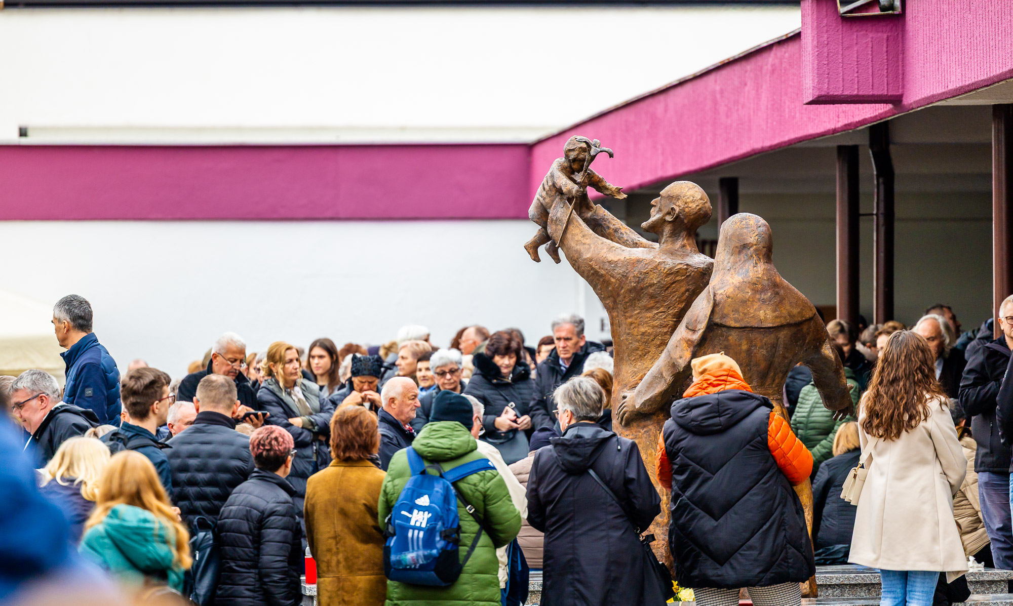 Svetu obitelj akademski kipar Vid Vučak prikazuje u živoj priči iz njihovog života: „Josip prima Isusa u ruke i veseli mu se, a Marija kao da dolazi za Isusom. To je jedna životna priča iz svakodnevnoga života prenesena u život Svetoga Josipa. Također ova zorna priča sugerira i uzdiže samog Isusa kao našega Spasitelja“, u nekoj drugoj višoj dimenziji. Umjetniku je „veliko zadovoljstvo pozitivna reakcija ljudi na njegovo umjetničko djelo“ . I to zadovoljstvo vjernika bilo je očigledno na ovoj Svečanoj akademiji, koja je nastavljena misnim slavljem i blagoslovom umjetničkih dela u obredu blagoslova zagrebačkog nadbiskupa monsignora Dražena Kutleše.