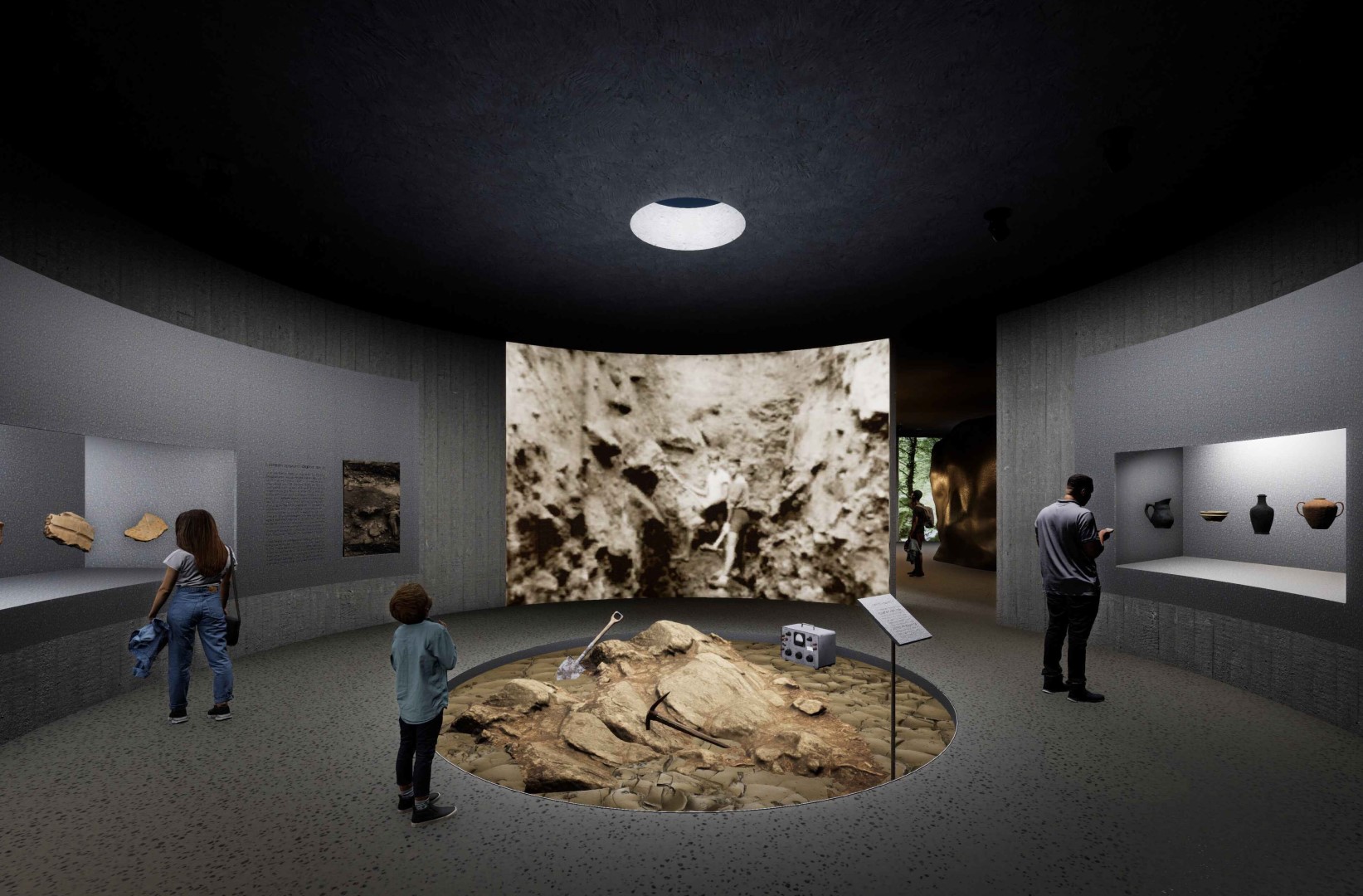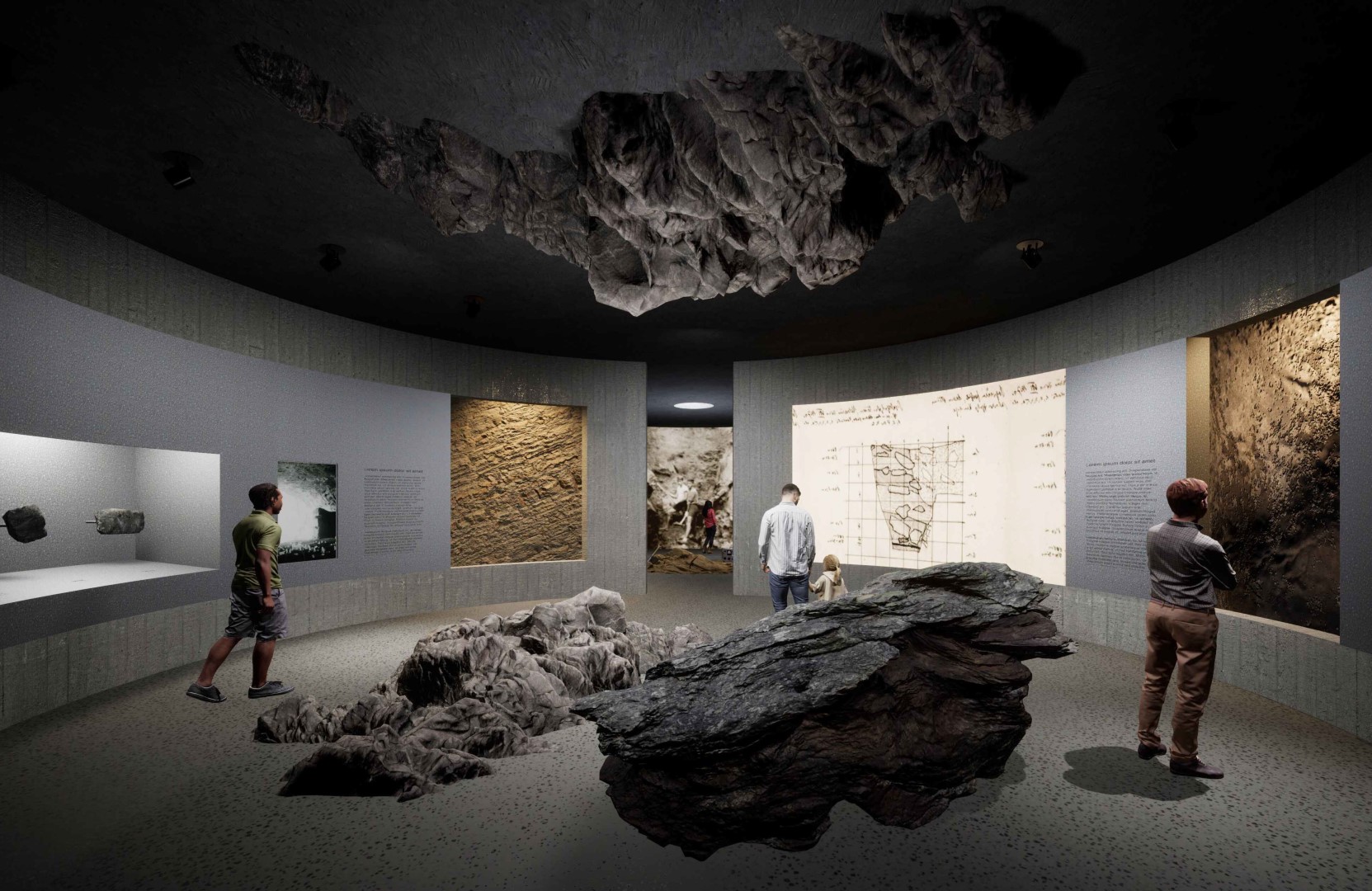 "Projekt se odlikuje promišljenom integracijom u okoliš te inovativnom tlocrtno-prostornom dispozicijom koja evocira karakter iste špilje. Osnovna ideja – otisak programa na terenu – ostvarena je kroz sustav kružnih dvorana koje su nositelji centralnih funkcija te tvore izložbene i interpretacijske cjeline. Oko njih se u negativnom obliku stvaraju servisni i radni međuprostori, stvarajući zanimljivu komunikaciju između zona. Ovakva policentrična organizacija omogućuje dinamičnu i Ukopanost zgrade, uz zenitalno otvaranje unutarnjeg prostora, dodatno ističe njen “špiljski” karakter te čini arhitekturu i njezino iskustvo neposredno povezanim s kontekstom.