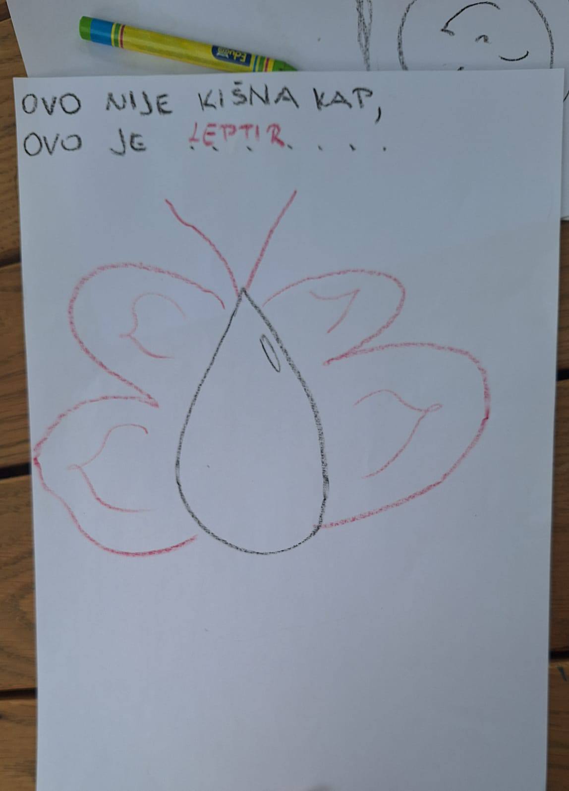 Završili smo radionicu aktivnošću koja je zahtijevala timski rad, brzo razmišljanje te spretnost i kreativnost. Svako dijete imalo je 10 sekundi da na 1 papiru nacrta i nastavi crtež koji su drugi započeli. Na kraju smo dobili zanimljiv prikaz maštovitog razmišljanja svakog pojedinog djeteta.