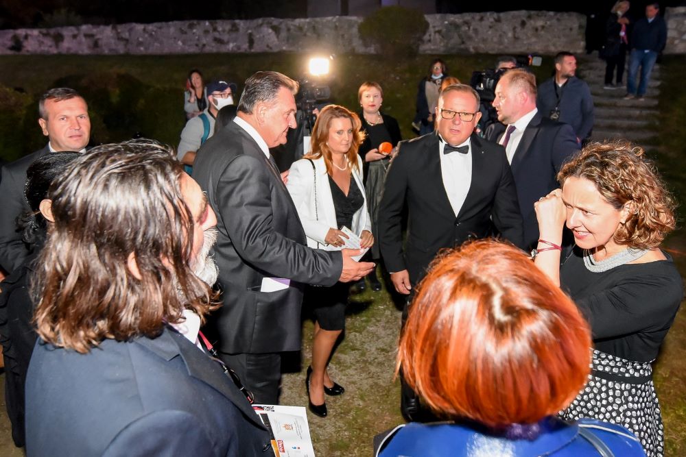 Pridržavamo se svih mjera i preporuka i vjerujem da će sve biti u redu. Ovo je jedan od najljepših ambijenata, glazbenici vele da će svirati zvonkije u ovom prostoru i mislim da je riječ o sjajnoj simbiozi naše kulturne i povijesne baštine i barokne glazbe. Želim svim Varaždincima i gostima da uživaju u glazbi“, poručio je varaždinski gradonačelnik Ivan Čehok, a župan Varaždinske županije Radimir Čačić čestitajući organizatorima što su pripremili festival prisjetio se kako već više od dva desetljeća Varaždinske barokne večeri su festival nacionalnog značaja, punih 13 godina imale su inozemne zemlje partnere, donijele čitav niz nastupa poznatih glazbenika, pa i Bečkih dječaka, ali i izrazio nezadovoljstvo što je koncert otvorenja bio u izravnom prijenosu na Trećem, a ne na Prvom programu Hrvatske televizije. „Varaždinske barokne večeri ubrajaju se među 20 svjetskih festivala. Ambijent je prekrasan, a festival je jako važan i za Varaždin, koji je grad kulture. Kultura će biti sve važnija, prostor slobodnog vremena je nešto što je u prirodi razvoja gospodarstva, a kultura je dio te priče. O tome moramo voditi računa i tražiti sve više i više, sve bolje i bolje, a to traži financijsku podršku. Zahvaljujem Vladi, a posebna zahvalnost ministrici, koja je danas bila na sjednici Vlade i došla je ovdje. Ona razumije značaj ovih večeri i očekujem da će i dalje biti tako“, istaknuo je župan Čačić.
