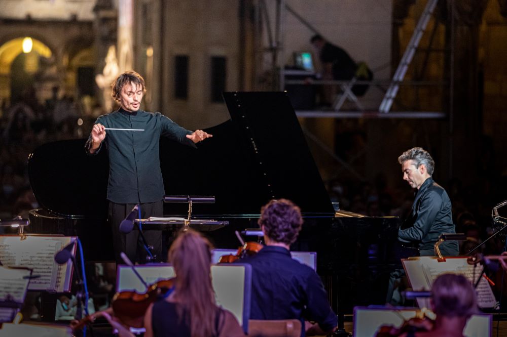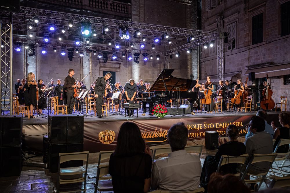 Dubrovački simfonijski orkestar pod ravnanjem brazilskog dirigenta Eduarda Straussera i virtuozni pijanist Goran Filipec održali su, pod pokroviteljstvom Kraša, veličanstven koncert sinoć, 18. kolovoza te briljantnom izvedbom djela Franza Liszta i Roberta Schumanna zadivili mnogobrojnu festivalsku publiku ispred Katedrale.