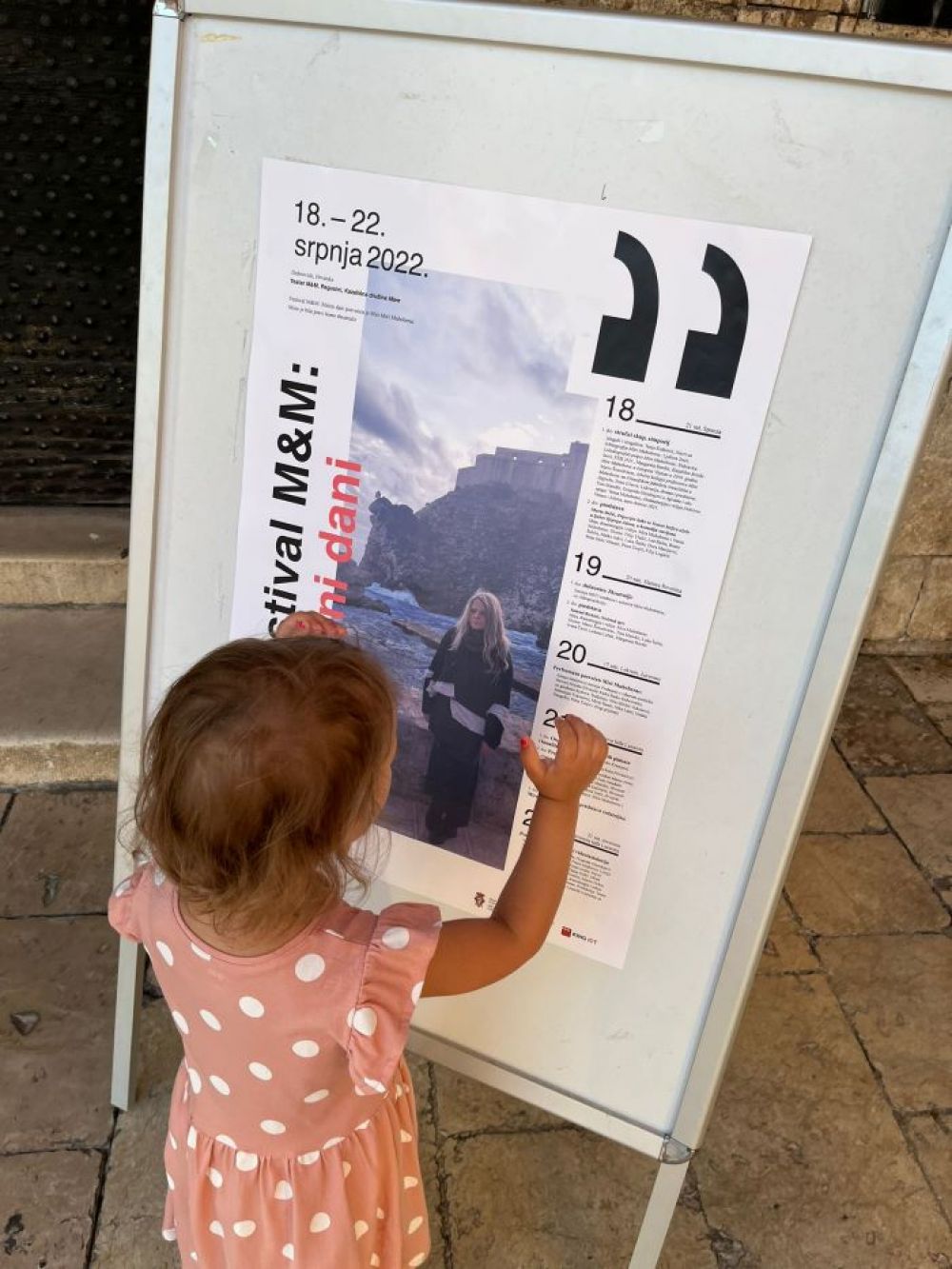 Fotografije - naslovna: Mala kazalištarka, naša draga prijateljica, razgovara s Mićom na plakatu za Festival M&M: Mićini dani (foto: Ivana Đula)