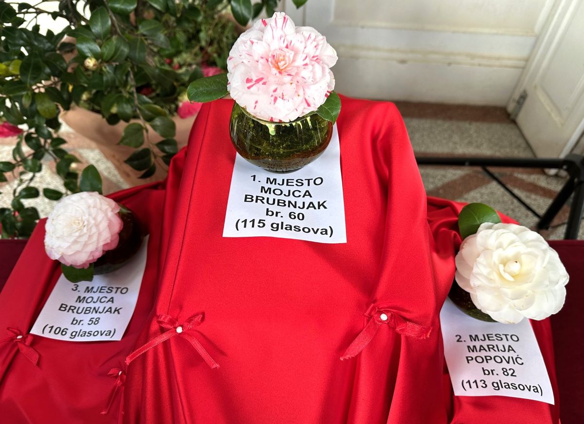 Najljepši grm kamelije prema ocjeni žirija ima Mira Shalabi iz Opatije, drugi je laureat Nikola Turina iz Opatije, a na trećem mjestu Mirjana Mendrila iz Rubeša. Publika koja je od petka do nedjelje posjetila izložbu kamelija u »Šporeru« imala je priliku glasovati za najljepše izložene »žive cvjetove« i u toj je kategoriji konkurencija bila iznimno jaka. Najviše je glasova publike osvojio cvijet kamelije koji je izložila Mojca Brubnjak iz Opatije koja je imala i cvijet kamelije dostojan trećeg mjesta, a drugu je poziciju u ovoj kategoriji osvojio cvijet Marije Popović iz Ičića.