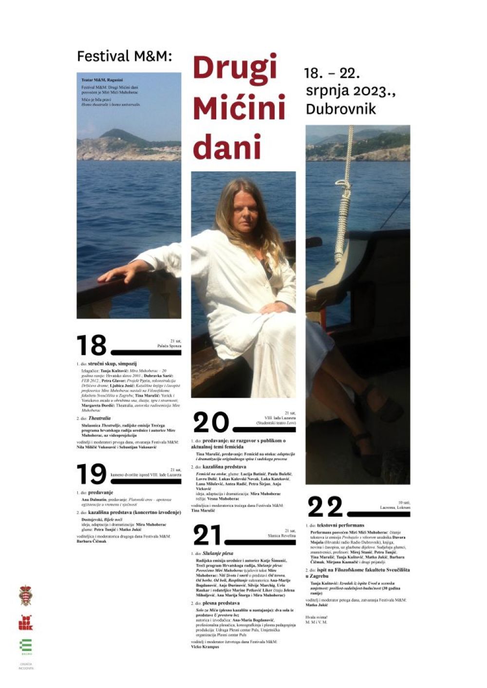 Festival M&M: Drugi Mićini dani festival je posvećen Miri Mići Muhoberac, dramaturginji, teatrologinji, redateljici, sveučilišnoj profesorici Filozofskoga fakulteta Sveučilišta u Zagrebu, Karlova sveučilišta u Pragu, predavačici na fakultetima u Osijeku, Puli, Zadru, urednici, književnoj i kazališnoj kritičarki, autorici i urednici knjiga, časopisa, novina i radijskih emisija u Zagrebu i Dubrovniku, novinarki, znanstvenici, predsjednici Hrvatskoga društva kazališnih kritičara i teatrologa, ravnateljici Kazališta Marina Držića, izbornici kazališnih festivala (Marulićevi dani, Naj, naj, naj festival….), članici i predsjednici kazališnih i književnih povjerenstava (Nagrada Vladimir Nazor, Marulićevi dani, Gavelline večeri, Gumbekovi dani, Naj, naj, naj festival, Hrvatski Sabor kulture, SKAZ….), dugogodišnjoj članici MH-a i Odjela za kazalište i film, lavici, Dubrovkinji s čestim boravcima u Zagrebu, čovjeku nazbilj, blizanki i prijatelju. Prvi Mićini dani održali su se prošlogodišnjega srpnja u/na prestižnim lokacijama našega Grada, kao što će biti i ove godine, a Festival M&M: Mićini dani u Zagrebu bili su u Velikoj dvorani Matice hrvatske, Studiju EXIT, Knjižnici i čitaonici Bogdana Ogrizovića i Kavani Palainovka.