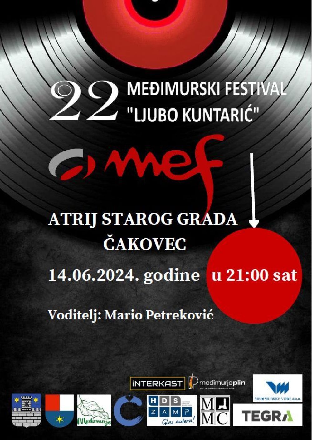 Izvođači će, po 22. puta, 14. lipnja od 21 sat, zapjevati u zagrljaju drevnih zidina Staroga grada u Čakovcu, scene kakvom se može pohvaliti malo koja sredina u našoj zemlji. Atrij palače Zrinskih pretvara se u pozornicu kojoj ne treba dodatnih ukrasa. Drevno zdanje samo po sebi je tron i uzdiže svakog izvođača koji se ovdje pokloni publici. Stručna komisija Međimurskog festivala „Ljubo Kuntarić“, među više od 80 novih skladbi pristiglih na ovogodišnji natječaj, odabrala je 19 najboljih koje će biti interpretirane u završnoj večeri glazbene manifestacije. Za svoje mjesto na ovoj spektakularnoj pozornici natjecali su se brojni izvođači iz Hrvatske i šire, što svjedoči o ugledu koji MEF „Ljubo Kuntarić“ uživa na domaćoj glazbenoj sceni, kojom pronosi odjek djela legendarnog skladatelja bezvremenskih nota.