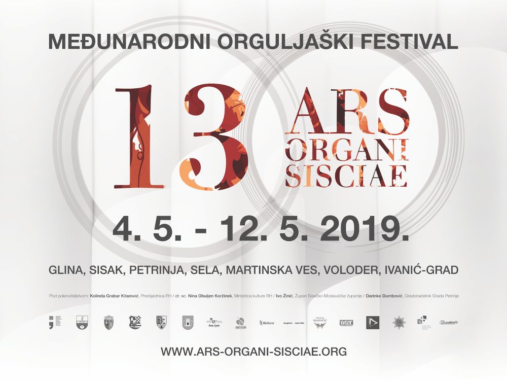U Glini, Sisku, Petrinji, Selima, Martinskoj Vesi, Voloderu i Ivanić-Gradu od 4. do 12. svibnja bit će održan 13. po redu Međunarodni orguljaški festival Ars organi Sisciae pod pokroviteljstvom hrvatske predsjednice Kolinde Grabar - Kitarović, ministrice kulture dr. sc. Nine Obuljen Koržinek, župana SMŽ Ive Žinića i petrinjskog gradonačelnika Darinka Dumbovića.