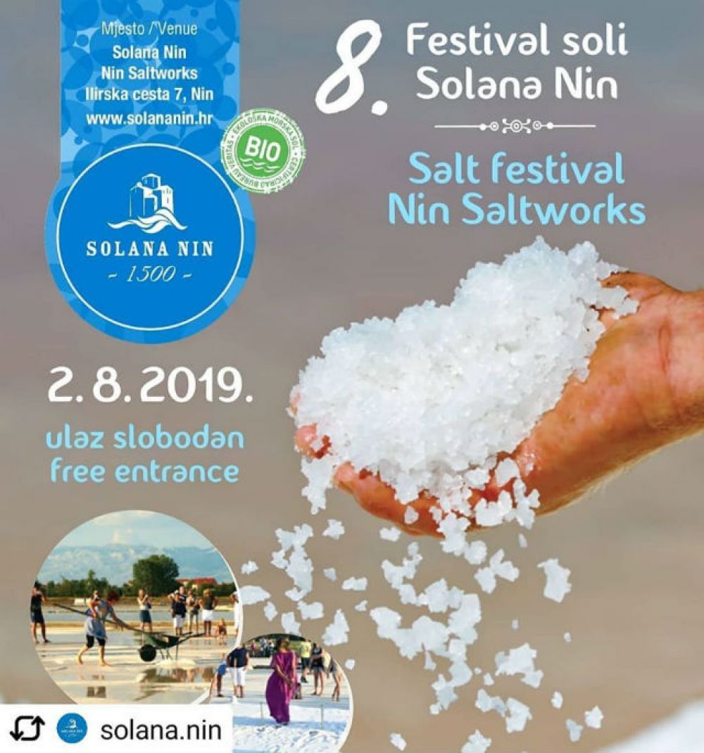 Ovogodišnji 8. po redu festival soli u solani Nin održavat će se u petak, 2. kolovoza s rasporedom prilagođenim kupačima i posjetiteljima - u jutarnjim satima od 8 do 12, a u večernjem od 17 do 21 sata. Solana Nin jedna od rijetkih europskih solana u kojoj se sol još uvijek proizvodi na tradicionalan način primjenom ručnog branja i pakiranja.