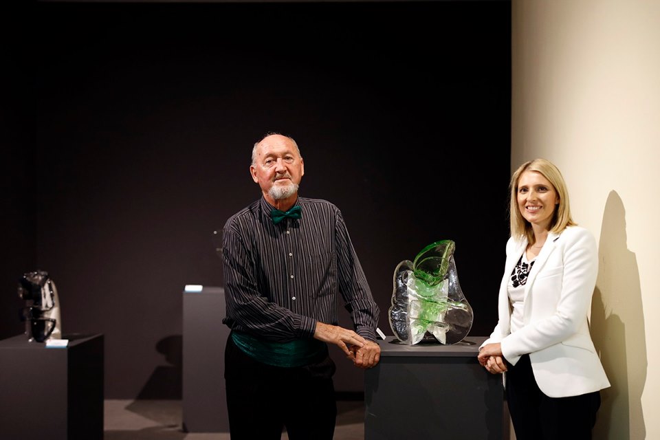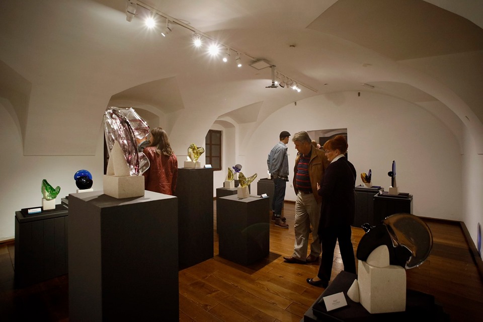 Izložbom skulptura u kristalnom staklu i kamenu u GMV, Mihael Štebih obilježava 50 godina svog stvaralaštva. Mihael Štebih, hrvatski slikar i kipar (Čakovec, 19. X. 1948). Diplomirao 1972. na Akademiji u Zagrebu u klasi prof. Valerija Michielija. Od 1984. do 2002. živio je u Kanadi. Isprva izrađivao apstraktne pastele lirskih ugođaja i simboličnih kompozicijskih rješenja (Horizonti, 1988), potom hiperrealističke portrete (Portret Ane Flander, 1987). Autor javnih spomenika u Ljubljani i Čakovcu. Od 1983. oblikuje u staklu skulpture apstraktnih oblika bogate svjetlosno-kromatskim efektima (Zeleni haiku, 1986; Plitko nebo, 1999). Izrađuje predloške za vitraje i mozaike (Čakovec, Toronto i Hamilton). Sudjelovao je na mnogim samostalnim i skupnim izložbama te kiparskim kolonijama i simpozijima. Uz kiparstvo, bavio se i slikanjem, ponajprije u tehnici pastela te fresco-slikarstva i mozaika. Njegova djela nalaze se i u brojnim muzejskim ustanovama, sakralnim objektima i privatnim zbirkama. Eksperimentirao je u različitim kiparskim materijalima: glini, terakoti, gipsu, bronci i drvu, da bi odabrao staklo kao materijal koji najviše odgovara njegovoj poetici i u kojemu od 1982. kontinuirano oblikuje skulpture.
