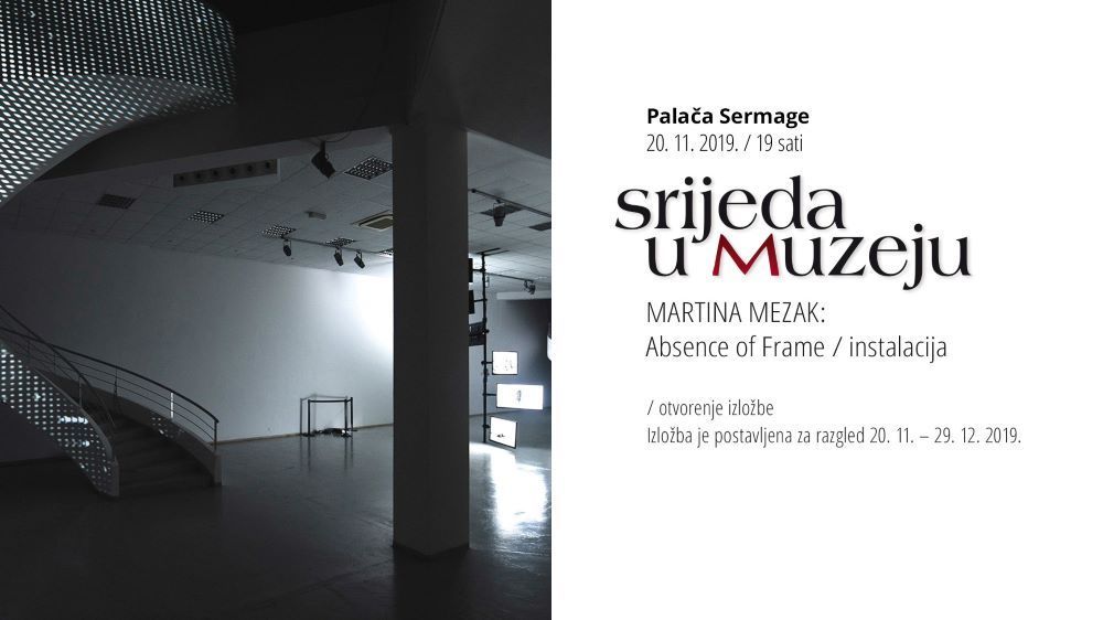 U okviru Srijede u muzeju, 20. studenoga u 19 sati, u Galeriji Sermage, otvara se izložba Martine Mezak, multimedijalne umjetnice koja je diplomirala na Akademiji likovnih umjetnosti u Zagrebu. Izlagala je na brojnim samostalnim i skupnim izložbama i festivalima u zemlji i svijetu. Svojim radom nastoji istražiti ljudsku percepciju u odnosu na fenomenologiju osjeta i mogućnosti spoznaje s posebnim interesom za granice između svjesnog i nesvjesnog iskustva. Živi i radi u Zagrebu i Berlinu.