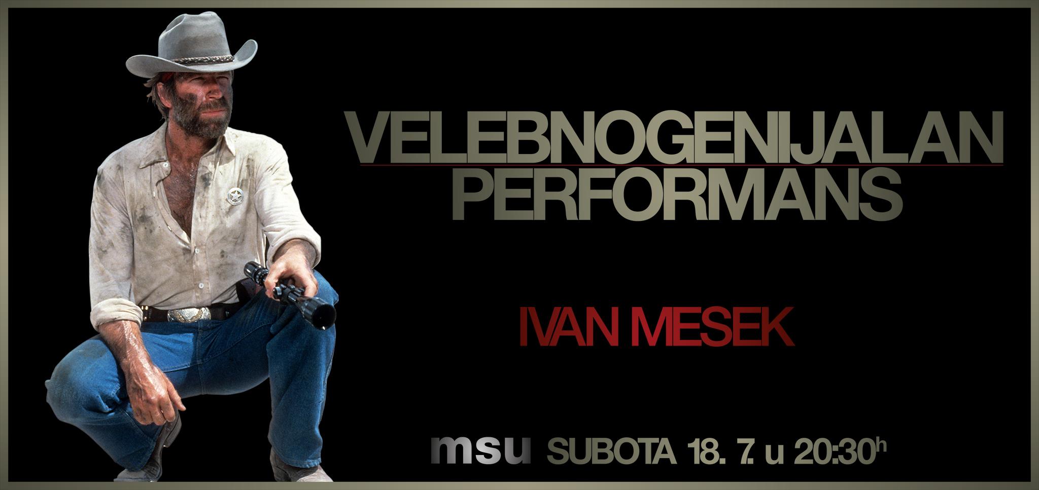 Varaždinski akademski slikar i umjetnik performancea u subotu, 18. srpnja "velebnogenijalno" je nastupio  u Muzeju suvremene umjetnosti u Zagrebu. Taj varaždinski umjetnik već godinama izvodi performance koji ga ne samo izdvajaju iz mase njegovih tzv. prizemljenijih kolega već svojim promišljanjima, i nastupima ujedno i pomiče granice suvremene umjetnosti u RH. Najupečatljiviji dosadašnji njegovi nastupi svakako su bili ležanje u lijesu, skakanje s balkona gradske vijećnice u Varaždinu, hodanje rubom fontane...