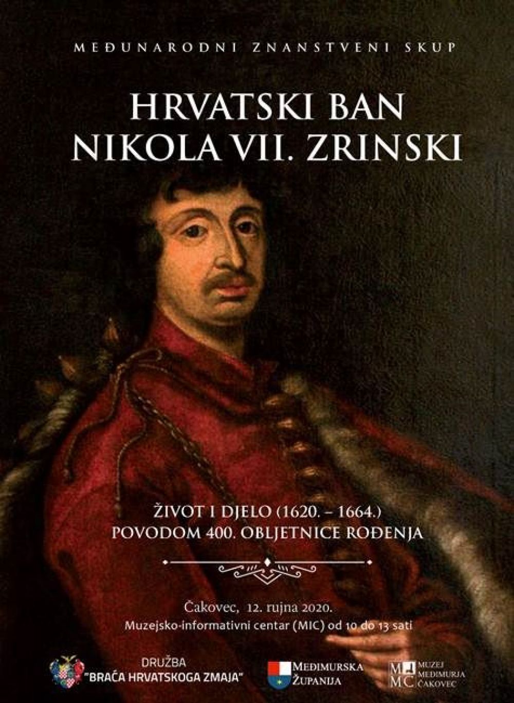 Muzej Međimurja Čakovec uz 400. obljetnicu rođenja Nikole VII. Zrinskog Čakovečkog, u subotu 12. rujna organizira znanstveni skup posvećen tom hrvatskom velikanu. Vrijeme događanja: subota, 12. rujna 2020., 10 – 13 sati. Mjesto događanja: Muzejsko-informativni centar MIC, Muzej Međimurja Čakovec, Pokrovitelj: Međimurska županija,Glavni organizator: Družba „Braća Hrvatskog Zmaja“ – Zmajski stol Čakovec,Suorganizatori: Muzej Međimurja Čakovec, Hrvatska akademija znanosti i umjetnosti HAZU, Znanstveni zavod Hrvata u Mađarskoj, Hrvatski institut za povijest, Ogranak Matice hrvatske u Čakovcu, Zrinska garda Čakovec, Zrinski konjanici Čakovec.
