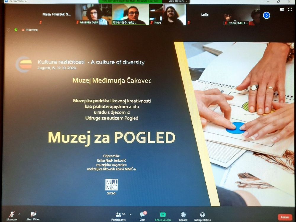 Svečana dodjela Nagrada Hrvatskog muzejskog društva održana je u petak 16. listopada 2020. godine u Muzeju suvremene umjetnosti u Zagrebu. Dodijeljene su Nagrade za životno djelo i Godišnje nagrade projektima realiziranim u 2019. godini. Ocjenjivački sud za dodjelu Nagrada HMD-a imao je težak zadatak izbora između 49 pristiglih prijava, ne samo zbog brojnosti prijava već i zbog njihove kvalitete, stoga su dodijeljena i Posebna priznanja. Posebno priznanje u kategoriji za prevedeni pedagoško-edukacijski program u 2019. godini dodijeljeno je Muzeju Međimurja Čakovec za projekt „Muzej za pogled 2019. - pedagoško-edukativni projekt s djecom iz autističnog spektra“. Koncept projekta kao i pripremu likovnih radionica osmislila je Erika Nađ-Jerković, muzejska savjetnica i voditeljica odjela Likovne galerije MMČ. Projekt je pripreman i izvođen uz usku suradnju s dr.sc. Jelenom Klinčević, kliničkom psihologinjom Psihologijskog centra Čakovec koja je preuzela ulogu izrade nacrta operativne koordinacije s djecom i Udrugom Pogled iz Nedelišća te psihološki monitoring i moderaciju na samim radionicama. Projekt je rađen u suradnji s udrugom Pogled iz Nedelišća (udruga za autizam). Suradnik - fotograf na projektu i autor završne izložbe fotografija bio je Marko Vučenik, fotograf iz Donje Dubrave.