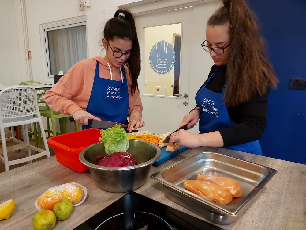 Salata od pilećih prsiju, kruške i manga, s dresingom od limete i jogurtom, pikantni pileći wok s basmati rižom, arancini od dimljenog rižota, zapečena Kentucky krilca, peciva sa sezamom, čokoladne i snježne puslica dio su jela besplatne radionice za srednjoškolce iz ciklusa Kuhanje je đir!. Organizirali su je u srijedu Šefovi kuhinja mediteranskih i europskih regija za mlade od 15. do 18. godina sa splitskog područja uz potporu Grada Splita kako bi se srednjoškolcima, a posebice budućim studentima, približili načini kuhanja koje mogu kasnije i sami primjenjivati.