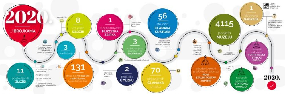 131 djece na muzejskim radionicama (u doba bez karantene),1 novoosnovana muzejska zbirka (Memorijalna zbirka Vinko Žganec),sudjelovanje s izlaganjem kustosa na 3 znanstvena skupa