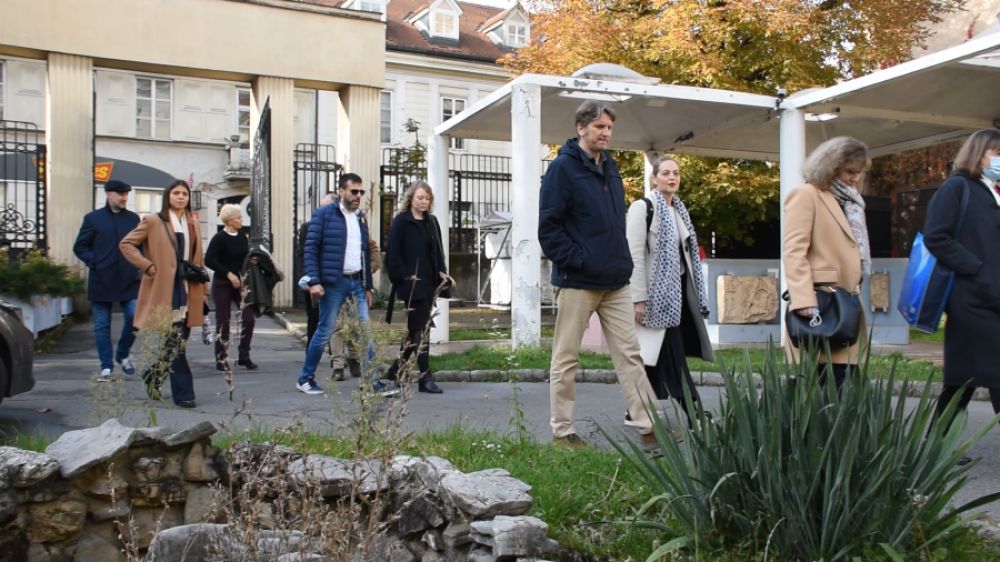 Slijedio je posjet parku Grič gdje su kolege iz Hrvatskog povijesnog muzeja prezentirali repliku zastave bana Jelačića koju je Albert Nugent, sin Lavala, nosio prilikom svečanog ustoličenja bana 1848. godine. Nakon parka Grič razgledana je zbirka kamenih spomenika u predvorju Arheološkog muzeja u Zagrebu gdje su sudionici šetnje saznali da je zbirku iskopao, sastavio i donio u Hrvatsku, točnije u jednu od prvih muzejskih institucija Museum Nugent, sam Laval nakon kupovine dvorca Trsat 1824. godine. Nakon zanimljive prezentacije informacija o tijeku iskopavanja i putovanja zbirke koja je u Narodni muzej stigla davne 1894. godine nakon otkupa, šetnja je završena dolaskom u Galeriju AMZ gdje se sudionicima šetnje putem snimljene video poruke obratio Thomas Byrne, državni tajnik za europske poslove Republike Irske, te su sve sudionike pozdravili ravnatelj Arheološkog muzeja u Zagrebu Sanjin Mihelić i Ruaidhri Dowling, veleposlanik Irske u Hrvatskoj.