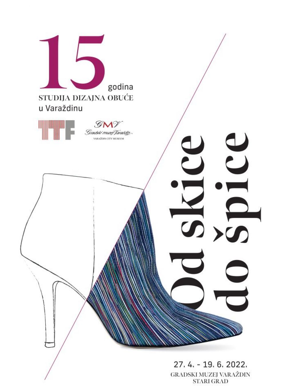 Nakon nedavno zatvorene izložbe Šošteraj, koja je pobudila velik interes publike, osobito školaraca koji su je imali prilike pobliže upoznati kroz edukacijske radionice o povijesti postolarstva i dizajna obuće, suradnja Gradskog muzeja Varaždin i Studijske jedinice Varaždin Tekstilno-tehnološkog fakulteta Sveučilišta u Zagrebu nastavlja se kroz još jednu izložbu na temu obuće. Riječ je o izložbi pod nazivom Od skice do špice, priređenoj u povodu 15. obljetnice djelovanja preddiplomskoga stručnog studija Dizajn obuće u Varaždinu, koja se u sklopu Srijede u Muzeju u varaždinskome Starom gradu otvara 27. travnja. Kao i Šošteraj, i ovaj izložbeni projekt realiziran je kroz suradnju Jelene Rančić, kustosice u GMV-u, i dr. sc. Suzane Kutnjak-Mravlinčić, više predavačice i mentorice na TTF-u.