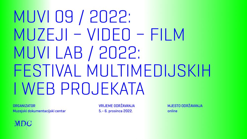 Deveto izdanje festivala muzejskog filma i multimedije MUVI 09: muzeji – video – film i MUVILAB 2022. održat će se 5. i 6. prosinca 2022. godine . u online formatu.
