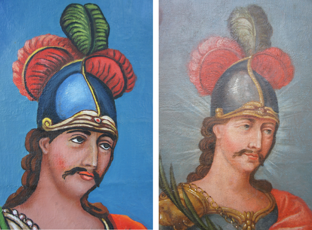 Slična su se otkrića dogodila i prilikom skidanja preslika i čišćenja Klementova lica pretvorenog gotovo u nečastivog s istoimene oltarne pale i anđela pretvorenog u harlekina, kao i na slici intenzivno koloriranoga sv. Florjana, a sve iz crkve sv. Klementa u Kelemenu... pa zatim sv. Magdalene čije je suze sakrila koprena krepiranoga laka i skrame, 18. st., iz crkve u Rukljevini, ili sv. Lucije preslikane do neprepoznatljivosti, iz sakralne zbirke Muzeja grada Koprivnice, etc, etc.. U ovim potonjim primjerima skidanja naknadnih preslika nije se remetila slikareva volja, već naprotiv, skidajući diletantske impasto slojeve uljanih boja vratio se izvorni i autentični izgled slika.