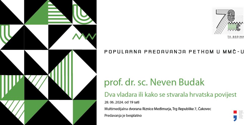Na naše peto po redu popularno predavanje, u Riznicu Međimurja dolazi nam najpoznatiji hrvatski povjesničar, prof. dr. sc. Neven Budak. U njegovoj fascinantnoj biografiji spomenut ćemo najbitnije dosege u karijeri. Redoviti profesor je povijesti na Filozofskom fakultetu Sveučilišta u Zagrebu. Pokretač je i voditelj doktorskog studija medievistike na Sveučilištu u Zagrebu. Od 1994. do 2005. godine sudjeluje i u poslijediplomskoj nastavi Srednjoeuropskoga sveučilišta u Budimpešti. Jedan od osnivača povijesnoga društva Otium. Bavi se hrvatskom ranosrednjovjekovnom te urbanom i socijalnom poviješću. Kao rezultat njegova zanimanja za pitanja hrvatskog identiteta nastala je dvosveščana enciklopedija Croatica, koja obrađuje doprinos Hrvata svjetskoj kulturnoj baštini. Sudjeluje ili je sudjelovao u uredništvu i savjetu nekoliko časopisa u Hrvatskoj, Austriji, Sloveniji, Njemačkoj i Rusiji. Od 1999. godine predsjednik je Hrvatskoga nacionalnog odbora za povijesne znanosti. Od 2009. do 2013. bio je član Nacionalnog vijeća za visoko obrazovanje. Od 2012. do 2015. bio je posebni savjetnik za znanost Predsjednika Vlade Republike Hrvatske. Pod njegovim je vodstvom 2012.-2014. izrađena Strategija obrazovanja, znanosti i tehnologije. Dobitnik je Nagrade Grada Zagreba, Velikog počasnog križa zemlje Gradišče i medalje Filozofskog fakulteta. Počasni je član Hrvatskog antropološkog društva i Međunarodne komisije za povijest gradova. Glavna djela: Prva stoljeća Hrvatske (1994), Gradovi Varaždinske županije u srednjem vijeku (1994), Kroatien. Landeskunde – Geschichte – Kultur – Politik – Wirtschaft – Recht (suurednik, 1996), Etnogeneza Hrvata (urednik, 1996), Karlo Veliki. Karolinzi i Hrvati (2001), Habsburzi i Hrvati (suautor, 2003), Hrvatska povijest srednjeg vijeka (suautor, 2006), Hrvatska i Slavonija u ranome novom vijeku (2007). Bio je stručni suradnik na snimanju dokumentarnog serijala „Hrvatski kraljevi“, „Dubrovačka Republika“ i „Doba uskoka“.