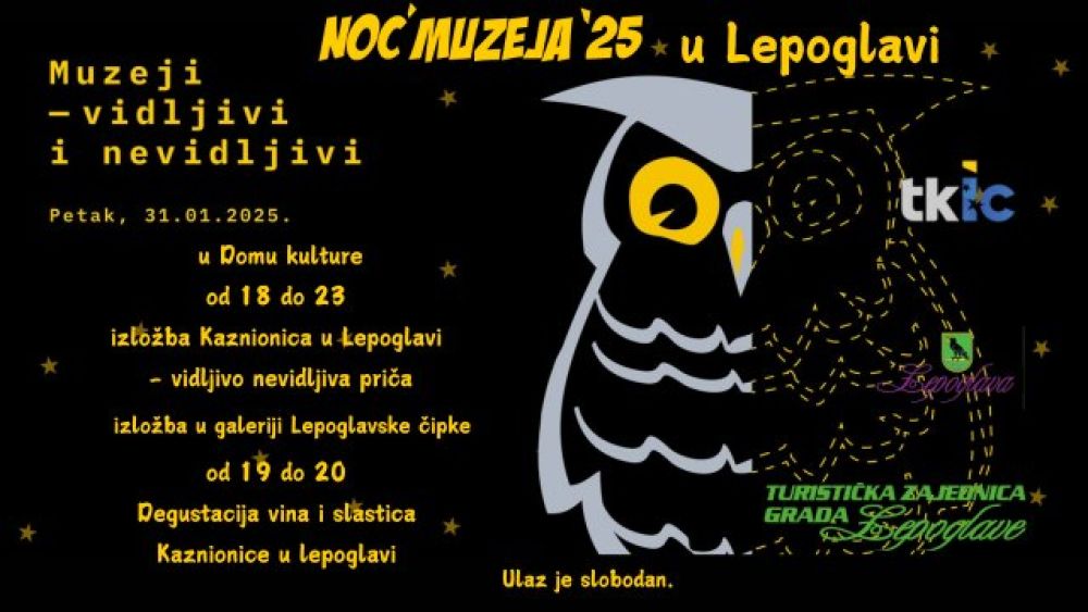 U skladu s ovogodišnjom temom Muzeji – vidljivi i nevidljivi, posjetitelji će u lepoglavskom Domu kulture u petak, 31. siječnja, moći razgledati tematsku izložbu – Kaznionica u Lepoglavi – vidljivo nevidljiva priča. U galerijskom prostoru TKIC-a bit će za razgled otvorena izložba fotografija Kaznionica u Lepoglavi – nekad i sad.