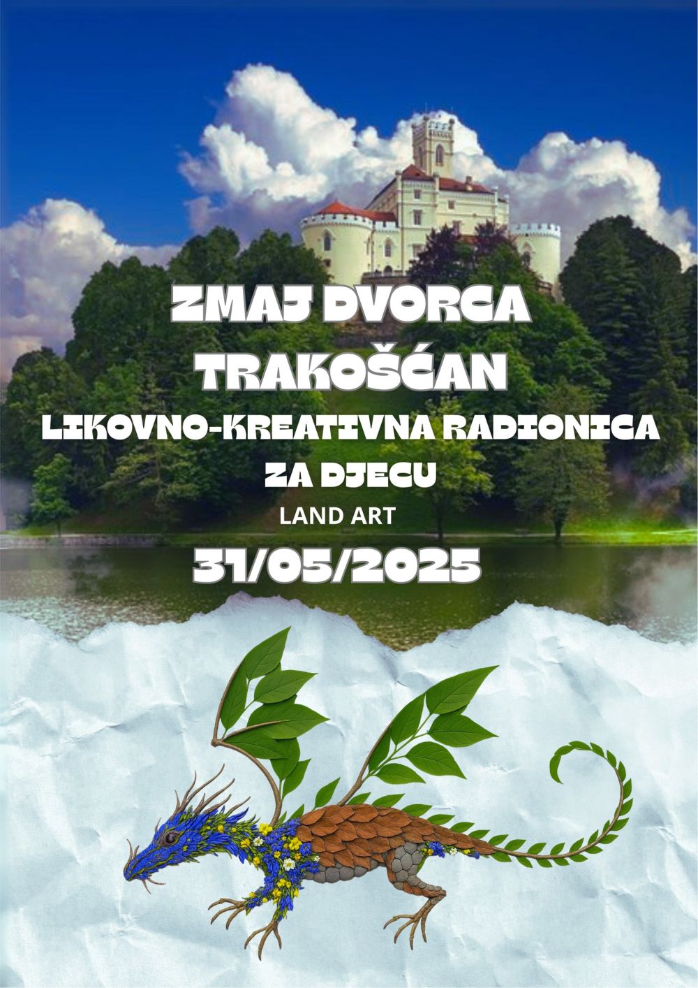 U subotu, 31. svibnja, od 16 do 18 sati, u čarobnom okruženju dvorca Trakošćan održat će se jedinstvena land art radionica za djecu pod nazivom „Zmaj dvorca Trakošćan". Kreativna i edukativna aktivnost namijenjena je djeci u dobi od 6 do 10 godina, a temelji se na konceptu land arta – umjetnosti u prirodi koja koristi elemente iz okoliša poput grana, lišća, papira i drugih materijala s vlastitom pričom. Kroz igru i stvaralaštvo, djeca će učiti o važnosti recikliranja, očuvanja prirode i timskog rada, a sve to u inspirativnoj atmosferi jednog od najljepših hrvatskih dvoraca.