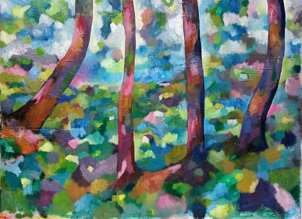 Ili je ipak riječ o različitim pojavnostima prirode, okoliša, svijeta oko nas.Čisti, neprijeporni dijelovi krajobraza u potpunosti pripadaju prepoznatljivom rukopisu slikara, skupina sukladnih ploha boje, koje nastavaju i druge slike iz novijeg opusa, čineći čvrstu pozadinu, temelj na kojem se uzdiže nekoliko vitkih stabala, koja su vrlo vjerojatno do malo prije nalikovala tajanstvenoj skupini zatečenoj u veseloj vilinskoj igri, četiri mlade djevojke opijene plesom. A sada su to izvijena, poput zanosnih tijela, tanka stabla u mističnoj šumi.Dosta često, Otavijević slika propeto, izvijajuće drveće, portretira ga i doista, svako njegovo stablo ima neku svoju posebnost, drugačije je, reklo bi se, kako su ta stabla slična ljudima i nose njihove karakteristike.