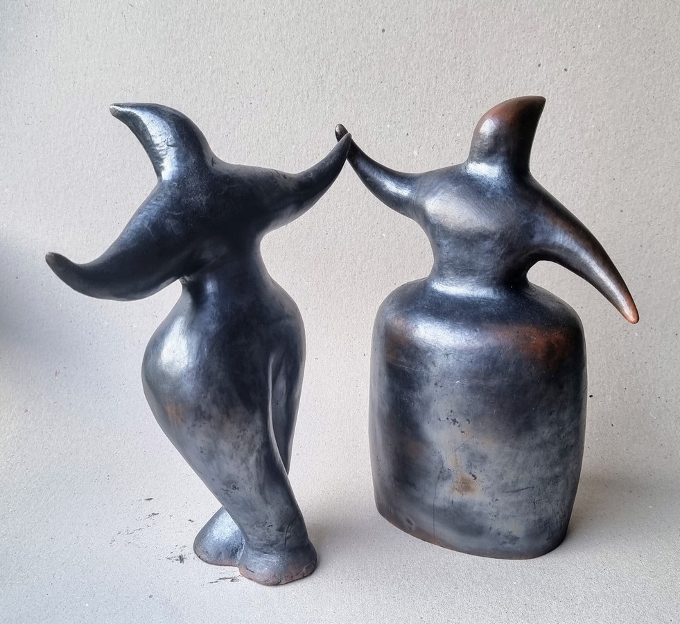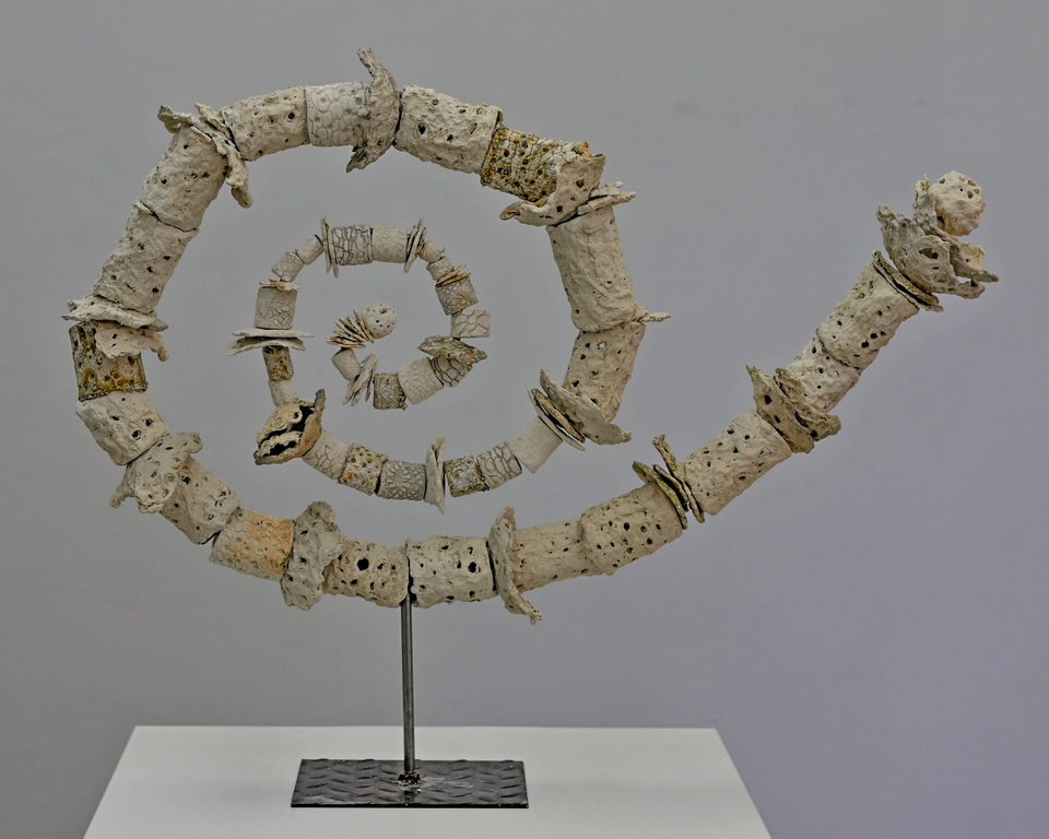 Svoje radove izrađuje ručnim oblikovanjem gline i modeliranjem na lončarskom kolu. Izlaže
