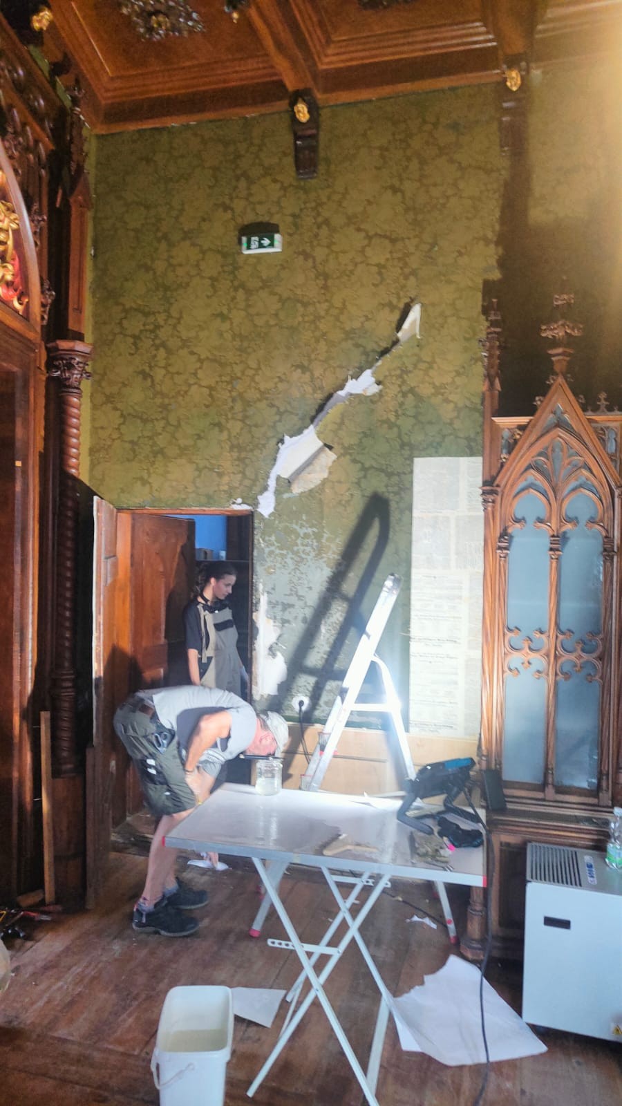 Dodatni povijesni sloj otkriven je ispod tapeta, gdje su kao izolacijski materijal korištene austrijske novine Die Grazer Zeitung. U njima se nalaze i oglasi za hiromantiju slavne francuske gatare Madame Lenormand, što svjedoči o tada raširenom interesu za spiritualizam, kulturnom fenomenu koji se u istom razdoblju prelama i u simbolističkoj književnosti.