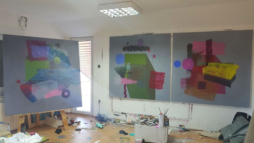 Akademski slikar iz Vukovara, Zoran Šimunović, pripadnik je mlađe, vrlo poletne generacije suvremenih hrvatskih likovnih umjetnika, izlagao je na nekoliko vrlo zapaženih samostalnih izložbi.U proteklom razdoblju intenzivno je radio na ciklusu Interijeri, razvijajući ciklus, produbljujući ga, trajno zainteresiran za velike formate ( šest slika 150 x 150 cm ), pronalazeći u njegovom neopisivo dubokom volumenu dobru bazu za oživotvorenje svojih motiva.Ciklus Interijeri nosi u sebi krhotine sjećanja na prošlo vrijeme, na događaje koje smo skoro i zaboravili, na ljude i njihove predmete koji se opažaju na novim slikama ciklusa i koji odaju dojam monumentalnosti, jest vjerojatno su bili važni, oko njih se okupljala cijela obitelj ( koja se u međuvremenu rasula po svijetu ), uostalom bilo je i ugodno sjediti na tom dvosjedu, tu su i neke teško prepoznatljive igračke, cvijeće... i sve je to skupa nježno prekriveno raznolikim plohama boje, koje lebde iznad predmeta i ispod , provlačeći se između, kao da lutaju i traže svoje mjesto u memoriji.Veliki formati ulja Zorana Šimunovića prepuni su simbola, znakova, tragova, koji upućuju na razrješenje enigme sjećanja jer poznato je, sjećanje je vrlo selektivno.