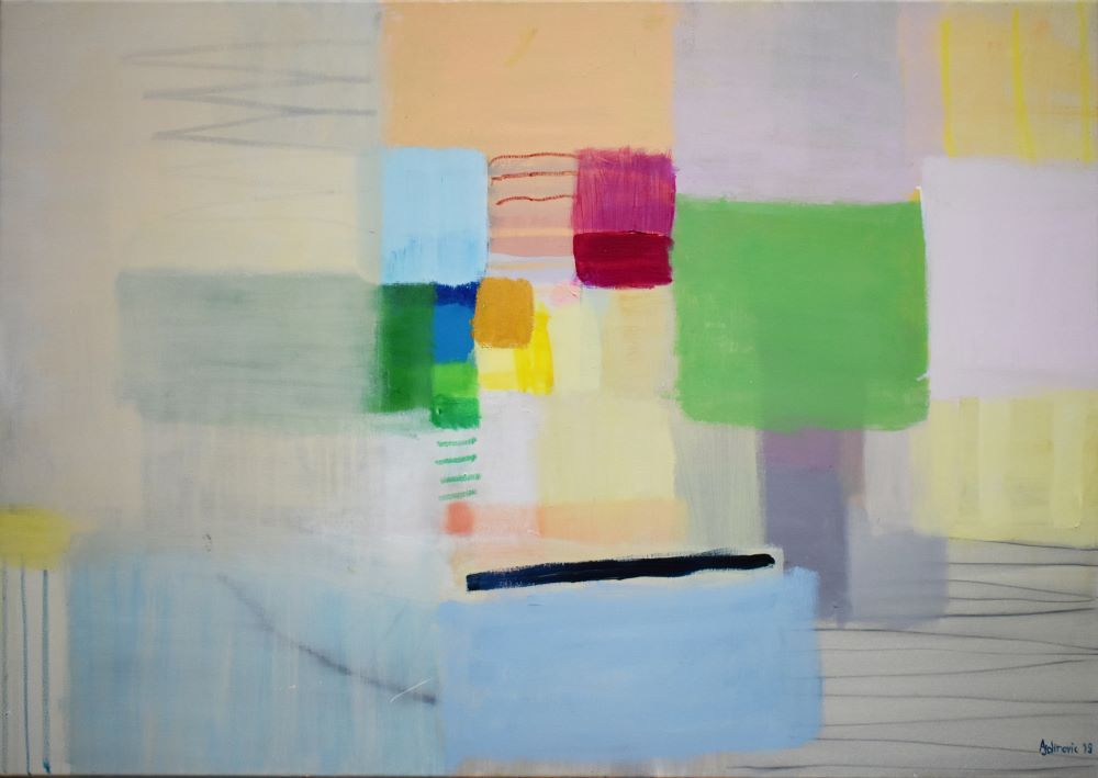 Ajdinovićev svijet čine obojane plohe fine, delikatne palete, vijugavi pravci koji se probijaju između tih neobičnih oblika ili ih čak spajaju u jedinstvenije cjeline, tvoreći složeni svijet imaginarnih konstrukcija, duboko skriven, svijet koji se tek u naznakama otkriva u slici s naizgled vrlo simplificiranim motivima. Važan element u njegovom ciklusu jest izraziti osjećaj optimizma koji izvire iz doista svakog kutka slike pa možemo reći da se njegov optimizam provlači i kroz blagosti kolora i oblika. Istodobno dubina i volumen obojanih ploha djeluju na promatrača vrlo sugestivno i dok koncentrirano ponire u plavi ili ljubičasti ili zeleni kvadrat, pravokutnik, razmišlja o vlastitim dvojbama i propitkivanjima u potrazi za odgovorima.