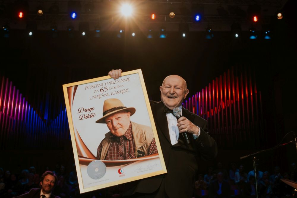 Drago Diklić je na pozornicu izašao u stilu, svirajući violinu na neslužbenu himnu grada Zagreba "Zagreb je najljepši grad". Na pozornici mu se pridružio i prateći orkestar te su zajedno u sljedeća dva sata disali kao jedno. Čuli smo i svojevrsni hommage Ivi Robiću uz pjesme "Tebi grade moj", "Samo jednom se ljubi" i "Moj rodni kraju", ali Dragine hitove poput "Zamagljen prozor", "Teško mi je zaboravit tebe", "Hladan vjetar poljem piri", "Gde si sad moj prijatel?", "Opet si plakala" i "Vse bum zapil" nakon koje mu je dodijeljeno priznanje Croatia Recordsa za 65 godina uspješne karijere. Priznanje mu je uručila kreativna direktorica Croatia Recordsa Nikolina Mazalin.