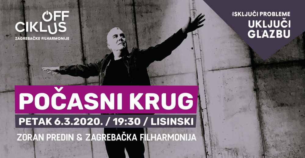Počasne krugove trče samo najbolji, a za nastup u Off ciklusu Zoran Predin priprema sasvim posebni koncert na kojemu će zajedno s glazbenicima Zagrebačke filharmonije i maestrom Krešimirom Batinićem istrčati "počasni krug" kroz svoju sjajnu pjesmaricu. Stoga, čak i ako ste Zoranov najveći fan - a takvih u Zagrebu i Hrvatskoj sigurno ne nedostaje, koncert "Počasni krug" u Off ciklusu uvjerit će vas kako ste možda čuli puno, ali da još uvijek niste čuli - sve.