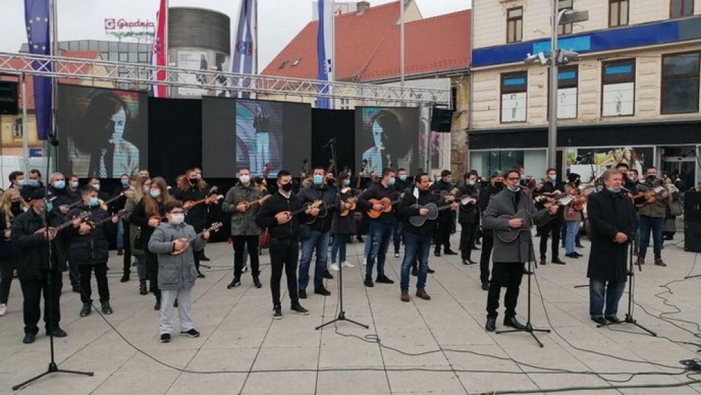 Istodobno pak dok se u spomen Kići Slabincu sviralo po slavnoskim trgovima, na zagrebačkom Krematoriju obitelj i mnogobrojni prijatelji, kolege i štovatelji okupili su se na posljednjem ispraćaju.Na osječkom trgu postavljen je i video zid na kojem se izmjenjuju fotografije iz Kićina života, a akciji se priključuju i Županja, Đakovo, Valpovo, Slavonski Brod i mnoga druga mjesta, pa čak i Gospić. a mnogi su Osječani u znak oproštaja za Kiću bacili ruže niz rijeku Dravu..