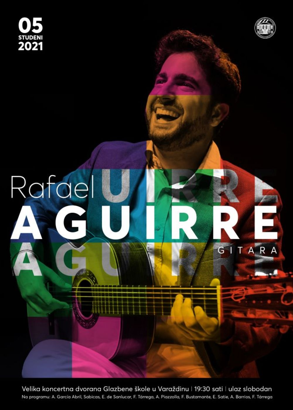 Rafael Aguirre međunarodno je priznati glazbenik čije su ga duboko razumijevanje glazbe, blistava virtuoznost i neizmjerno raznolik repertoar odveli u 37 zemalja svijeta. Početak njegove izvanredne karijere obilježio je osvajanjem čak trinaest prvih nagrada na najznačajnijim međunarodnim natjecanjima (uključujući Tarrega Competition i Pro Musicis, New York). Trenutno je jedan od najslavnijih gitarista u svijetu, a ovog petka imat ćete ga priliku čuti u Glazbenoj školi u Varaždinu.