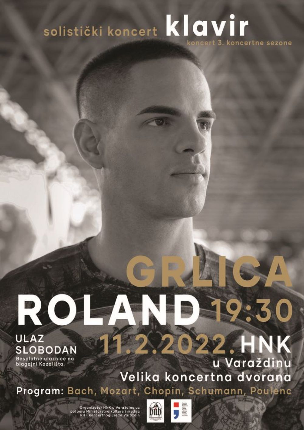 HNK u Varaždinu poziva zainteresiranu publiku na atraktivan solistički koncert pijaniste Rolanda Grlice koji će se održati u petak, 11. veljače s početkom u 19,30 sati u Velikoj koncertnoj dvorani HNK u Varaždinu. Koncert je organiziran uz potporu Ministarstva kulture i medija RH.