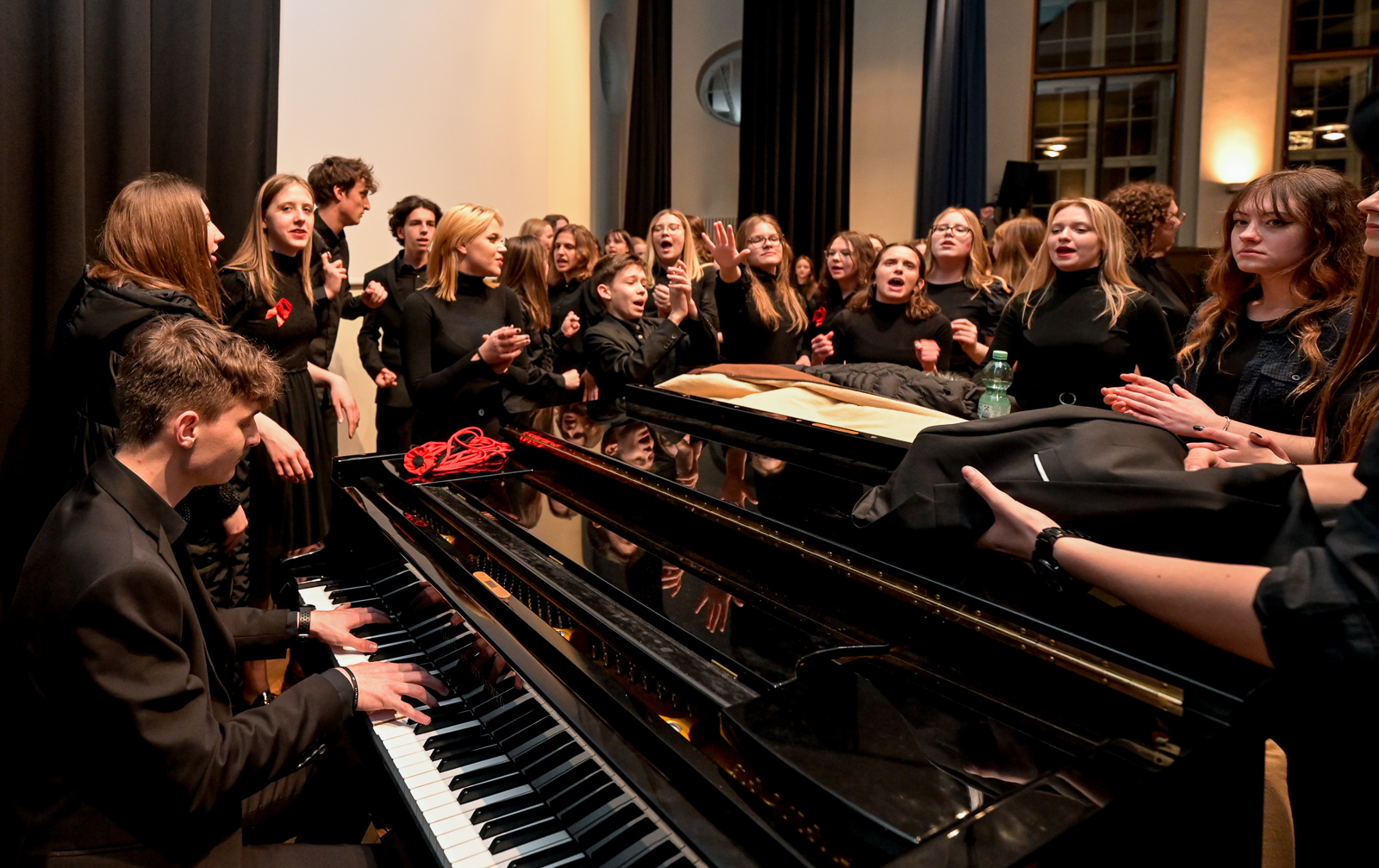 Profesorica varaždinske Glazbene škole Dada Ruža uvježbavala je mješoviti zbor i gudače, profesor Nikola Novak puhačke dionice dok je izvedbom dirigirao ravnatelj Glazbene škole Ravensburg Harald Hepner. Među brojnim posjetiteljima koncerta uz gradonačelnika Ravensburga Daniela Rappa i njegovih suradnika, bio je i varaždinski gradonačelnik Neven Bosilj, koji je istaknuo kako Varaždin s gradom Ravensburgom njeguje već godinama prijateljstvo i suradnju i kako mu je drago što je došlo do ove glazbene suradnje mladih i škola