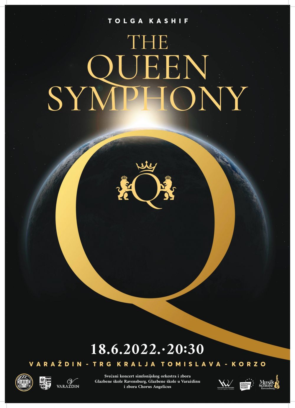 Premijerno izvedena u studenom 2002. godine, “The Queen Symphony” britanskog skladatelja Tolge Kashifa prvi će puta biti izvedena u Hrvatskoj 18. lipnja u 20.30 sati na varaždinskom Korzu. Nakon dvije godine rada na ovom monumentalnom djelu za zbor i orkestar, skladatelj Tolga Kashif ostvario je veliki uspjeh u rodnoj Britaniji, a djelo i dalje nastavlja oduševljavati publiku diljem svijeta. Kashif je svoje djelo izgradio na više od desetak naslova pjesama rock grupe Queen te je tako pronašao zajednički glazbeni jezik koji objedinjuje utjecaje zapadne glazbe u proteklih 200 godina.