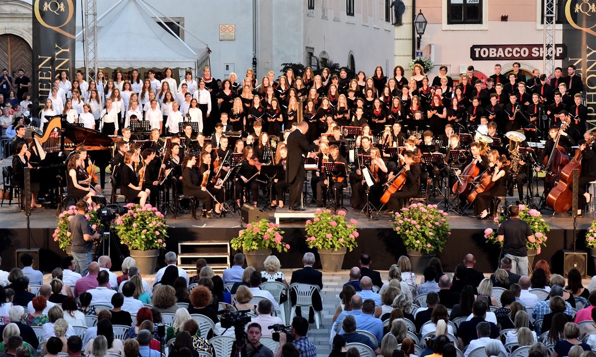 Veliki glazbeni spektakl “The Queen Symphony” britanskog skladatelja Tolge Kashifa u izvođenju učenika glazbenih škola dvaju prijateljskih gradova Varaždina i Ravensburga sinoć je na koncertu pod vedrim nebom na varaždinskom korzu pratilo nekoliko tisuća ljudi. Koncertom je dirigirao Harald Hepner, prof., dirigent Glazbene škole u Ravensburgu, a pjevačke zborove uvježbala je Dada Ruža, prof. GŠV u suradnji s Lukom Šoparom, zborovođom Chorus Anglicusa dok je za orkestralni dio iz Varaždina bio zadužen Nikola Novak, prof, iz GŠV.