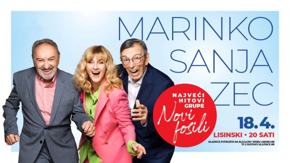 Budite i vi dio ovog spektakla! Pozivamo vas na koncert za pamćenje - Sanja, Marinko i Zec pjevaju najveće hitove grupe Novi fosili 18. travnja u Koncertnoj dvorani Vatroslava Lisinskog u Zagrebu.