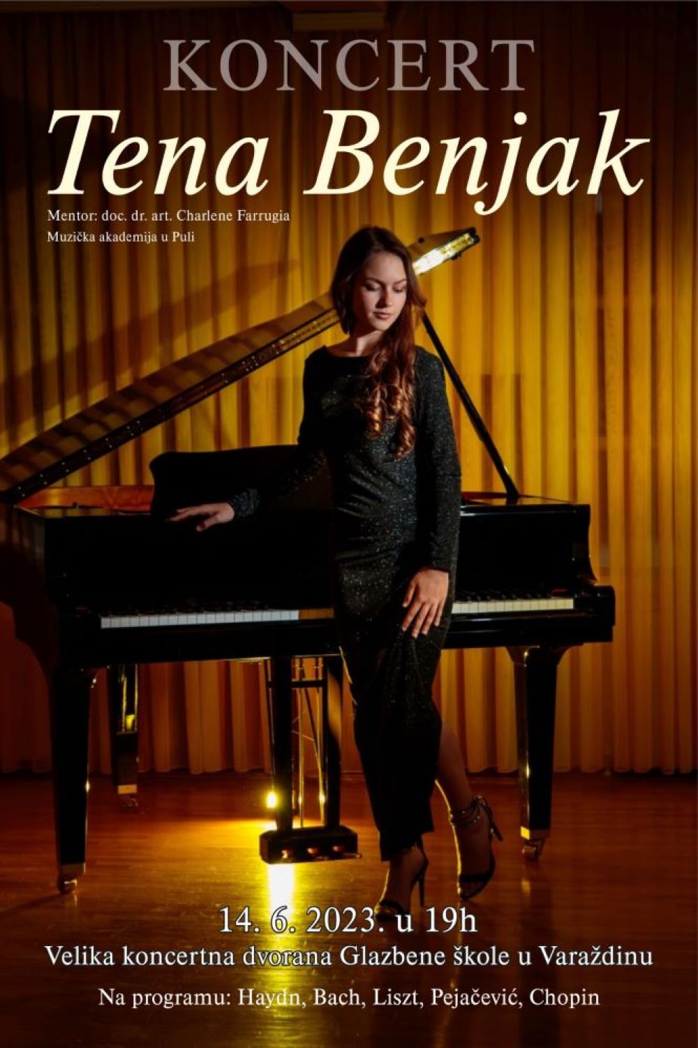 U srijedu, 14. lipnja s početkom u 19 sati u Velikoj koncertnoj dvorani Glazbene škole u Varaždinu solističkim koncertom predstavit će se Tena Benjak. Talentirana mlada studentica bivša je učenici Glazbene škole u Varaždinu koja je svoje obrazovanje