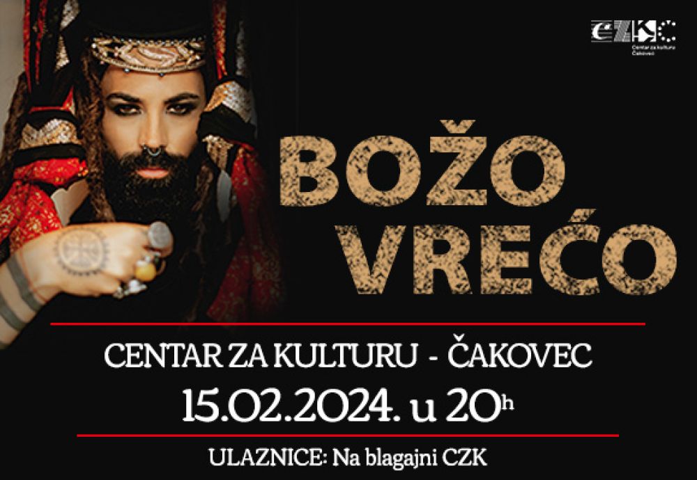 U Centru za kulturu Čakovec u okviru Tribine Čakovec četvrtkom, 15. veljače 2024. u 20 sati nastupa Božo Vrečo.